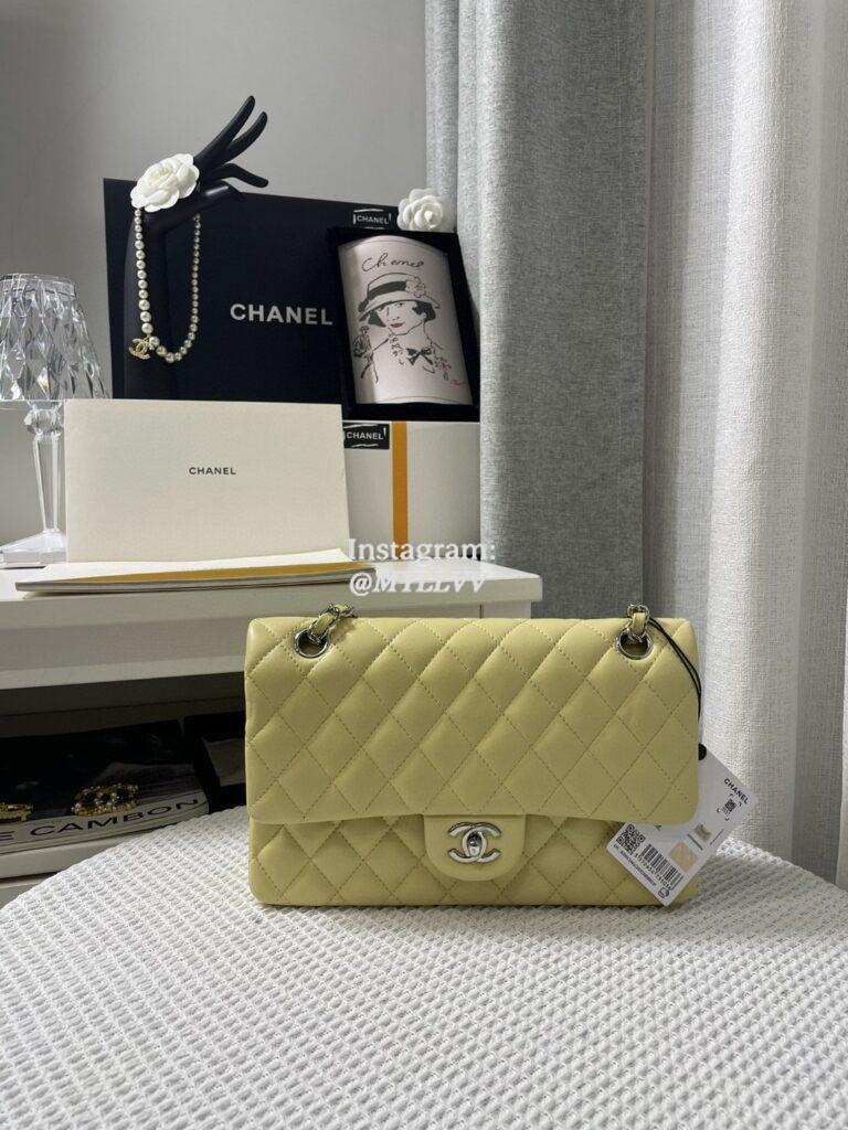 Top Quality Version:MYLLVV » Chanel Diamond Plaid Lambskin Classic Flap Bag Light Yellow With Silver 01112