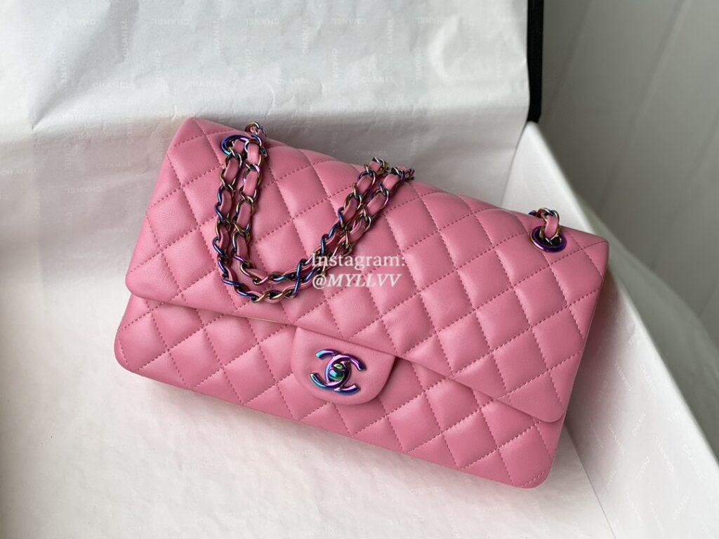Top Quality Version:MYLLVV » Chanel Diamond Plaid Lambskin Classic Flap Bag Peach Pink With Mirage AS1112