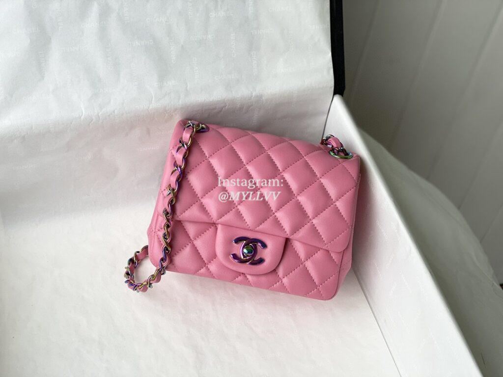 Top Quality Version:MYLLVV » Chanel Diamond Plaid Lambskin Classic Flap Bag Peach Pink With Mirage AS1115
