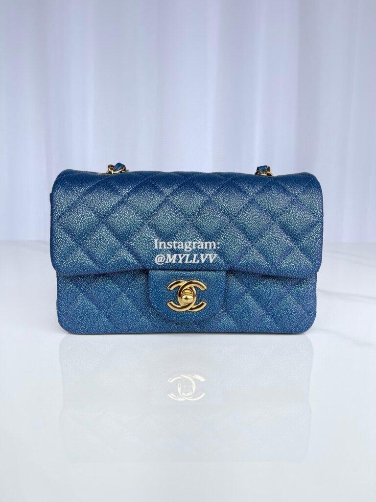 Top Quality Version:MYLLVV » Chanel Diamond Plaid Caviar Cowhide Classic Flap Bag Pearlescent Blue With Gold 1116