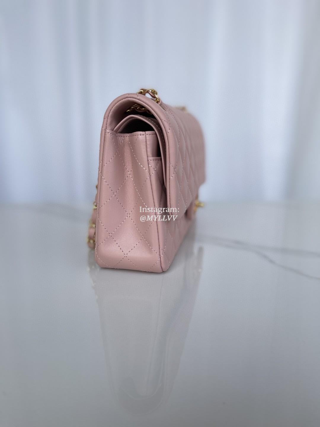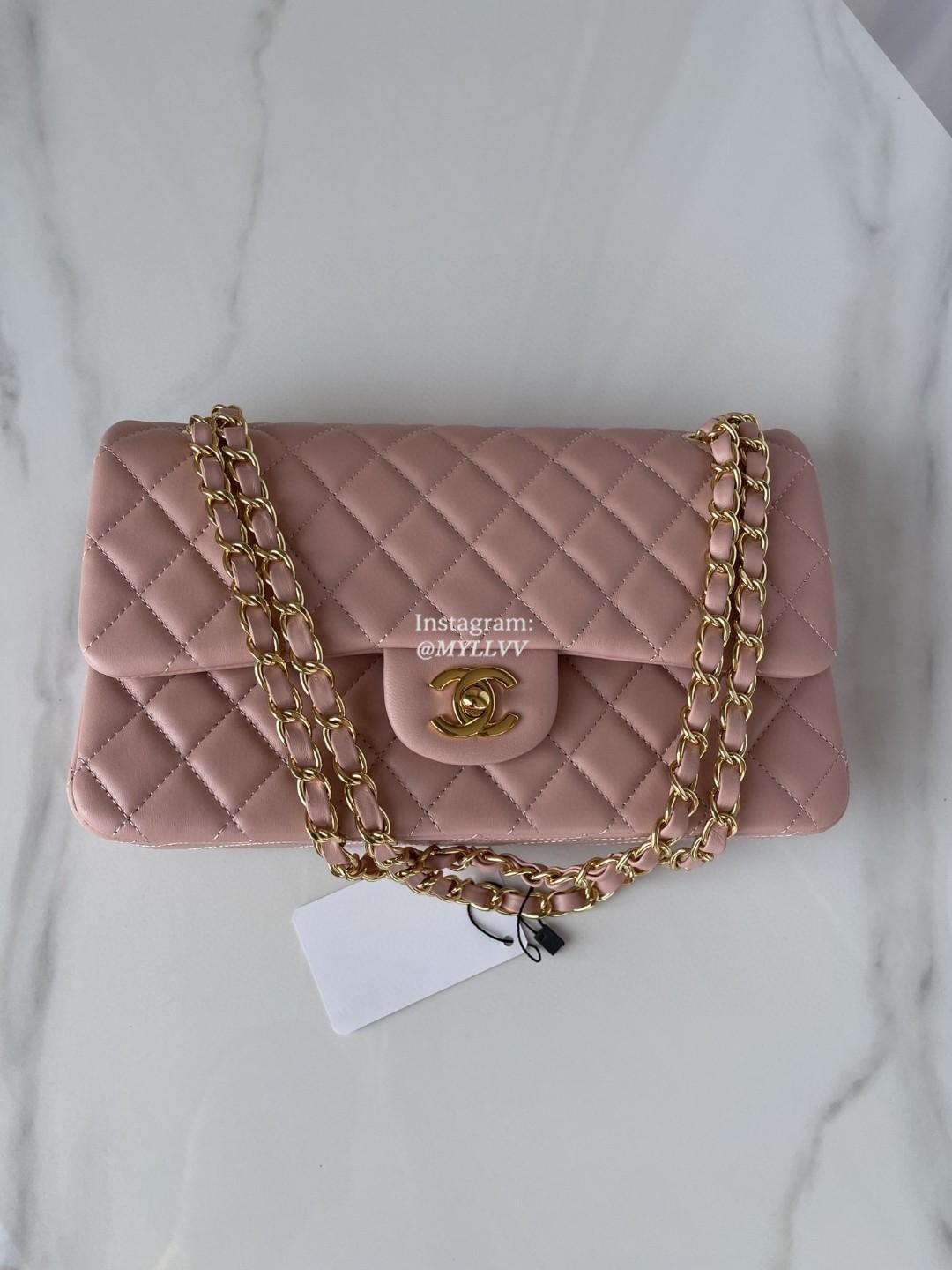Top Quality Version:MYLLVV » Chanel Diamond Plaid Lambskin Classic Flap Bag Pink With Gold A1112