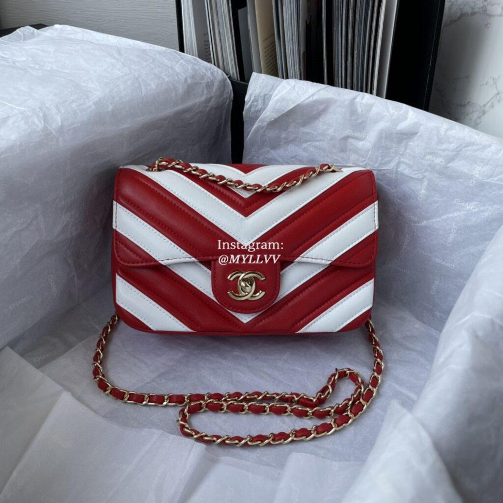 Top Quality Version:MYLLVV » Chanel Diamond Plaid Lambskin Classic Flap Bag Red White With Gold AS4048
