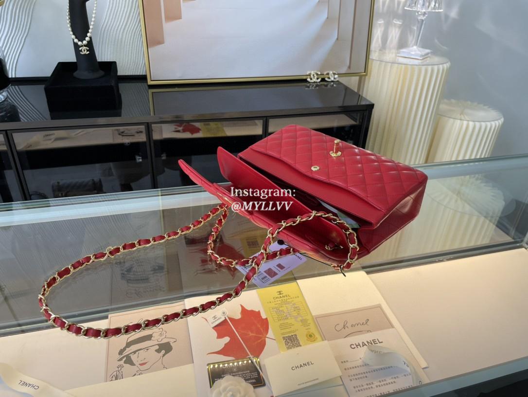 Dimension: 25.5 cm Top Quality Version:MYLLVV » Chanel Diamond Plaid Lambskin Classic Flap Bag Red With Gold 01112
