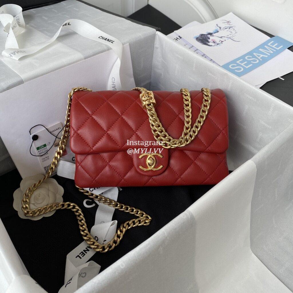 Top Quality Version:MYLLVV » Chanel Diamond Plaid Lambskin Classic Flap Bag Red With Gold AS3393