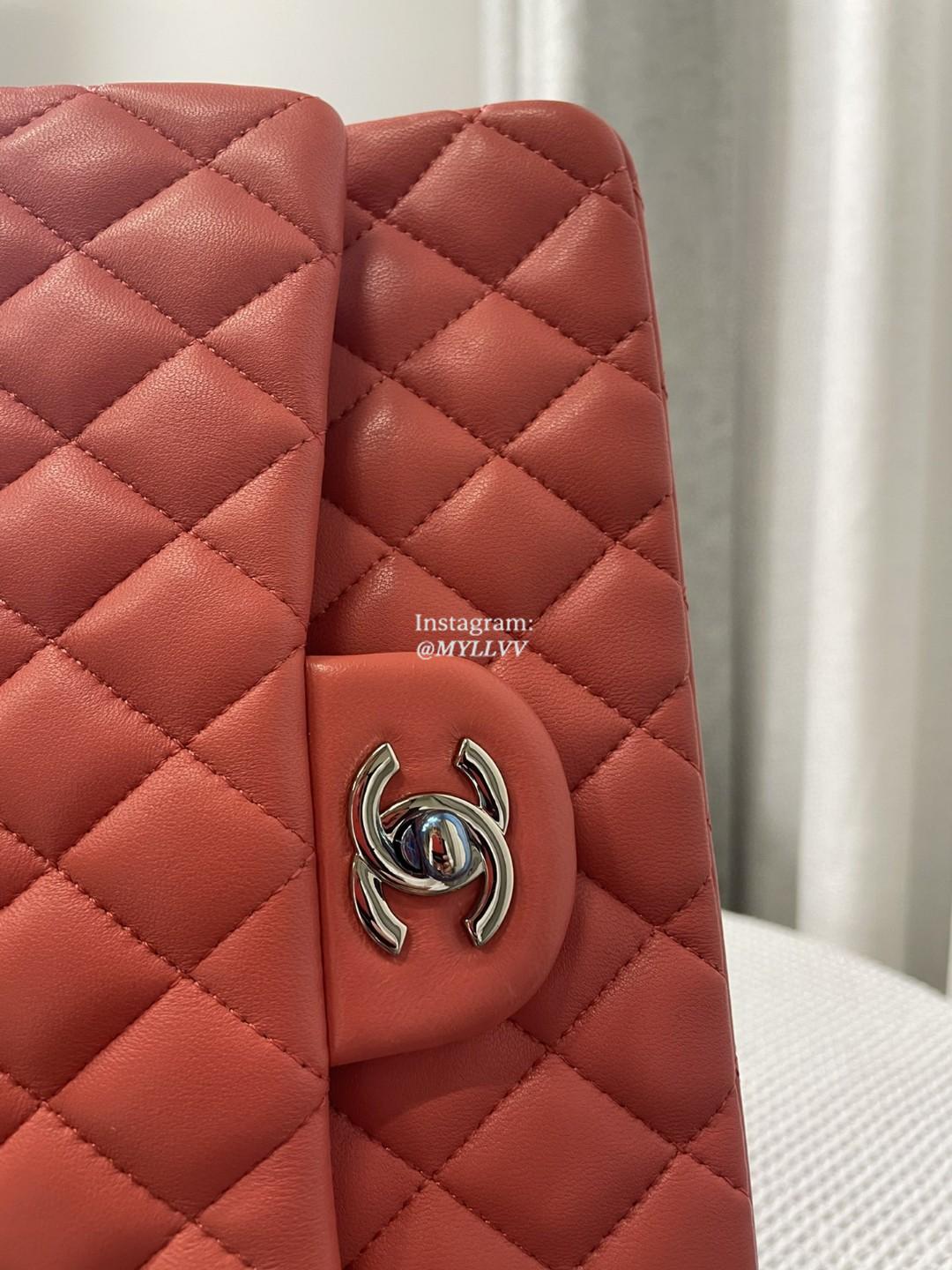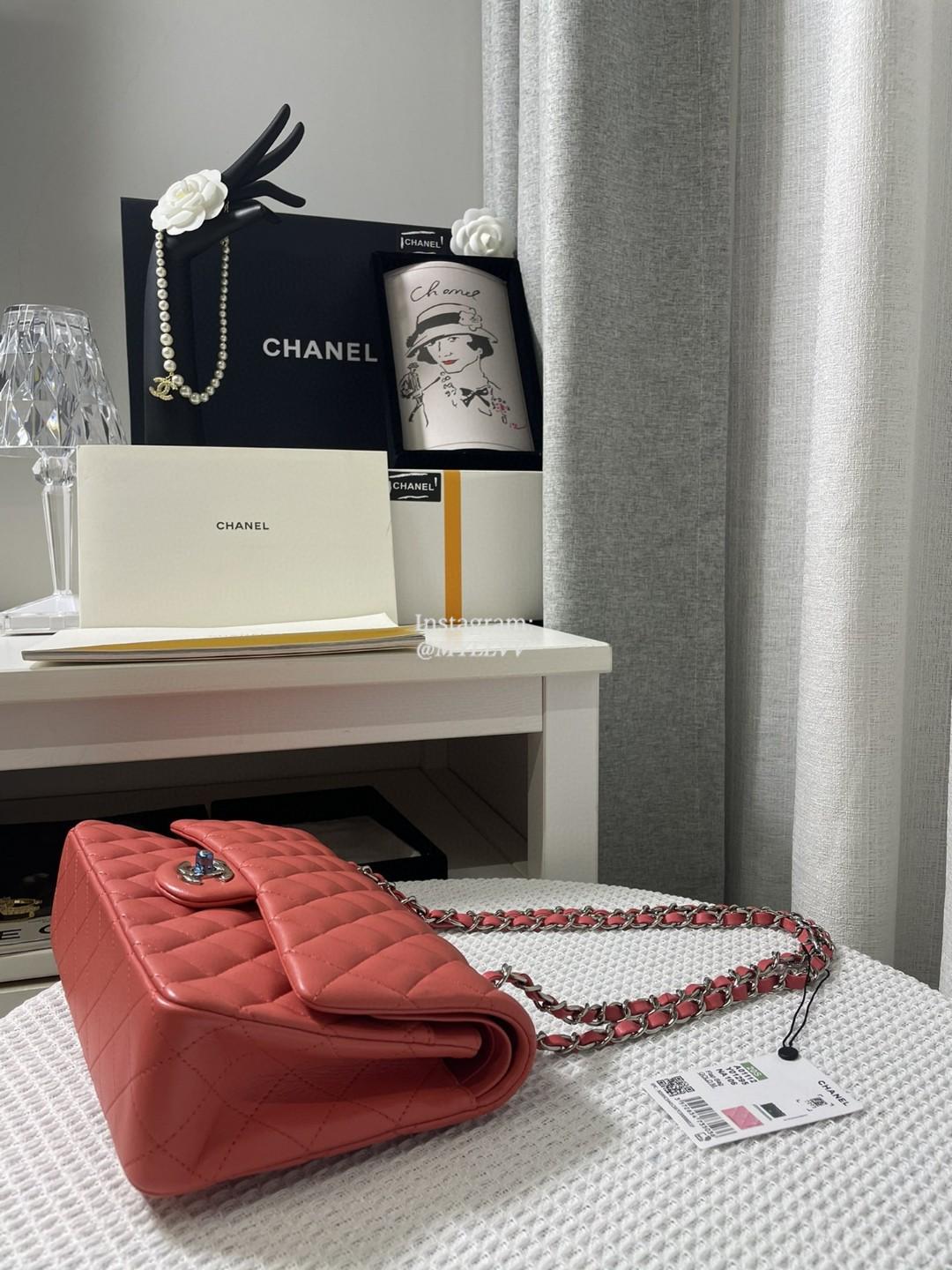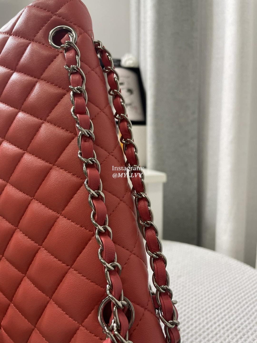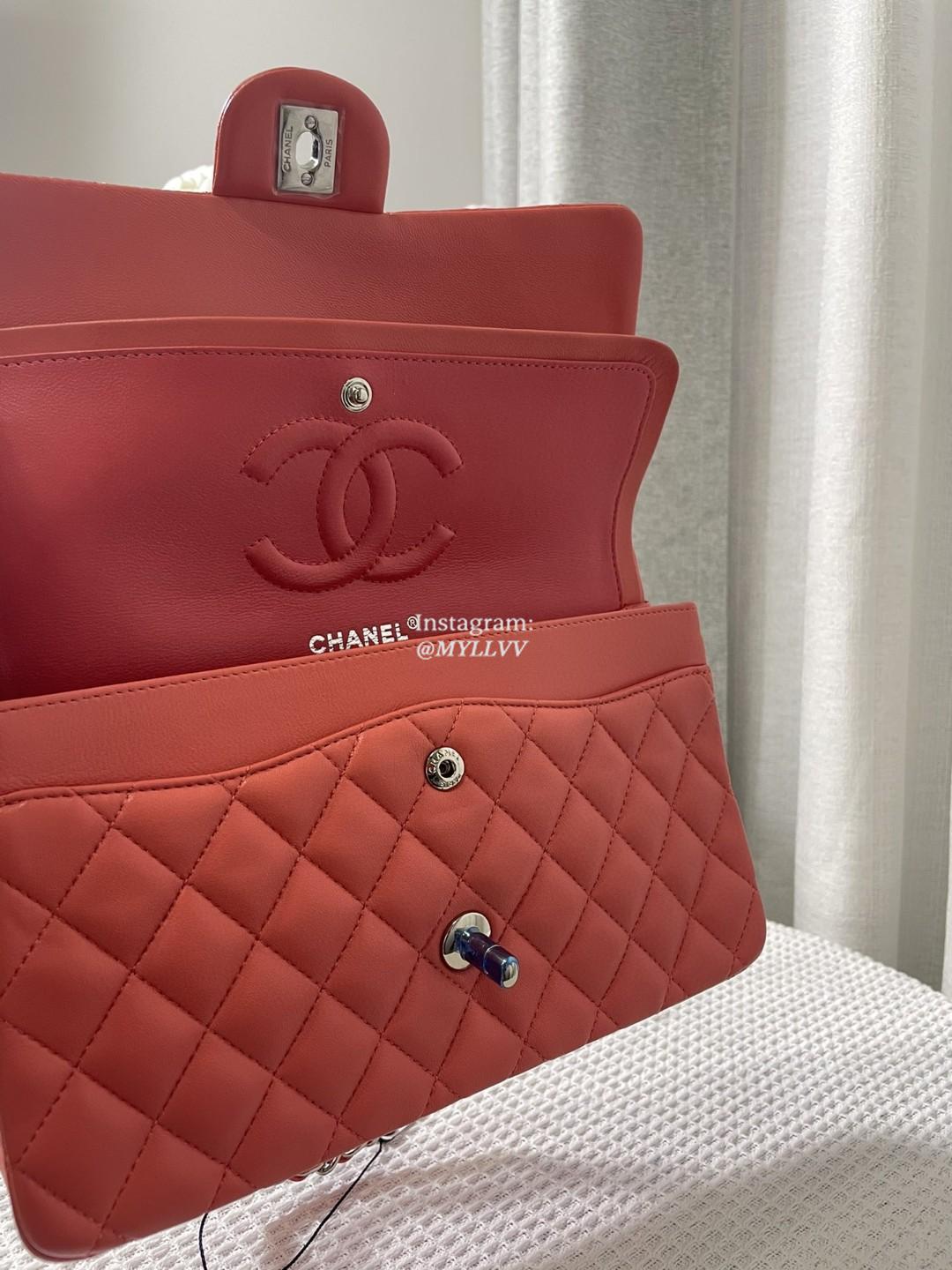Dimension: 25.5 cm Top Quality Version:MYLLVV » Chanel Diamond Plaid Lambskin Classic Flap Bag Rose Red With Silver 01112
