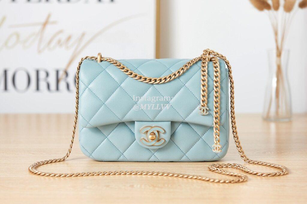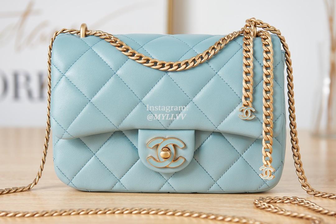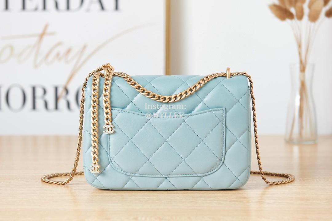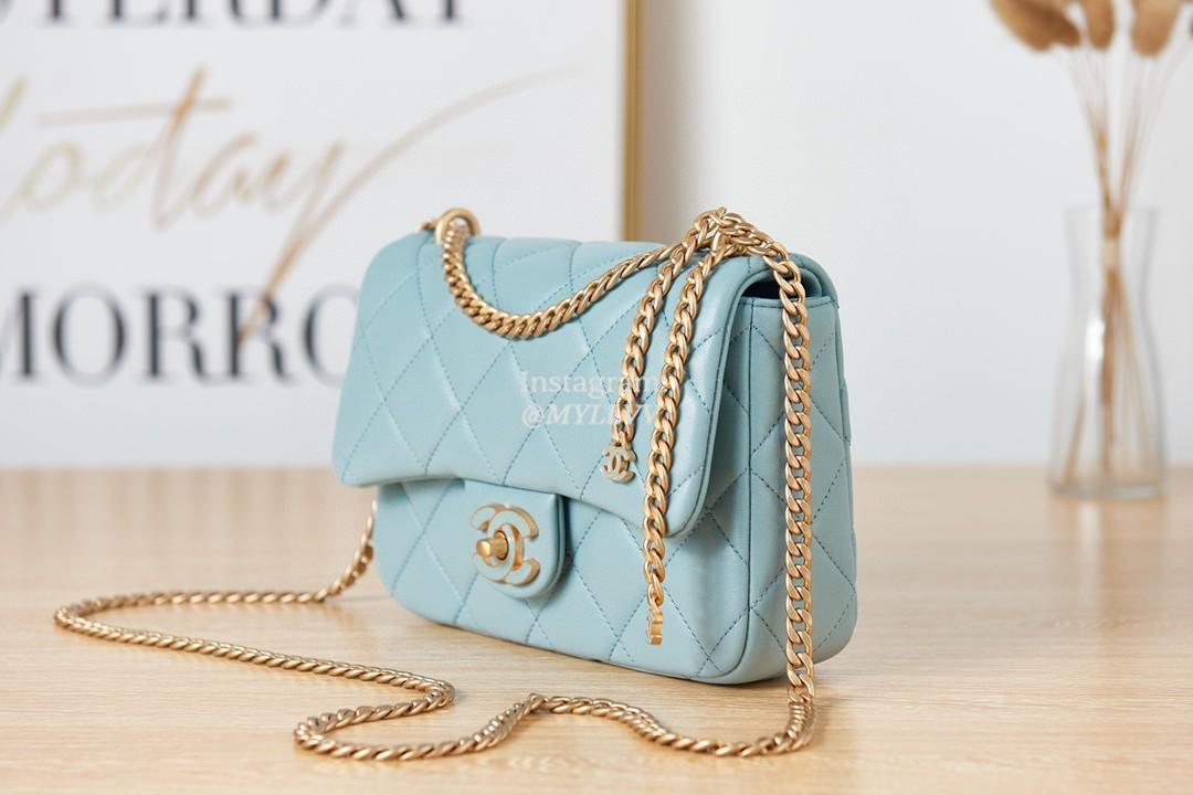 Top Quality Version:MYLLVV » Chanel Diamond Plaid Lambskin Classic Flap Bag Sky Blue With Gold AS3114