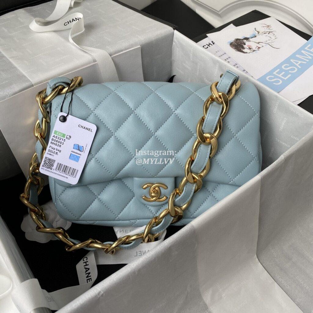 Top Quality Version:MYLLVV » Chanel Diamond Plaid Lambskin Classic Flap Bag Sky Blue With Gold AS3215