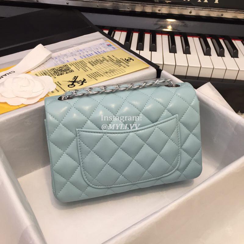 Dimension: 20.0 cm Top Quality Version:MYLLVV » Chanel Diamond Plaid Lambskin Classic Flap Bag Sky Blue With Sliver 5500