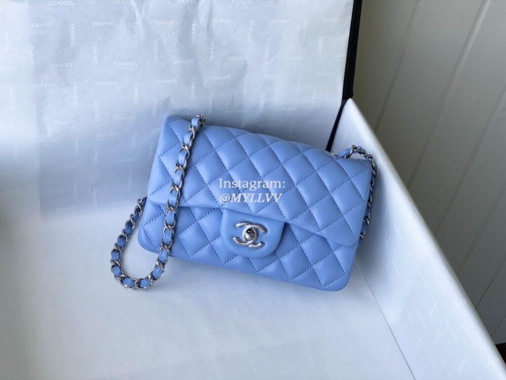 Top Quality Version:MYLLVV » Chanel Diamond Plaid Lambskin Classic Flap Bag Sky Blue With Sliver A01116