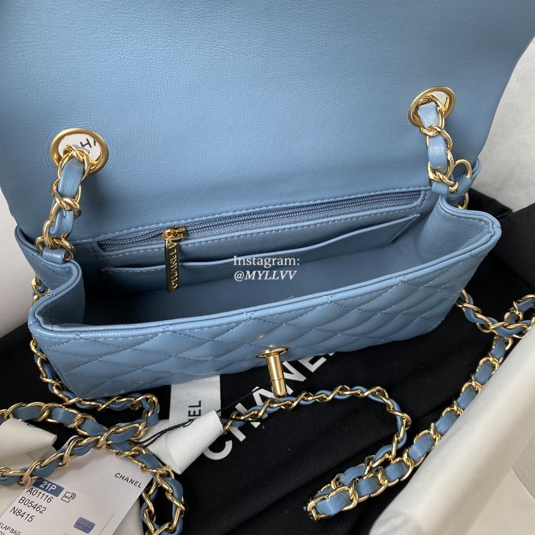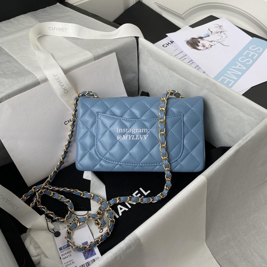 Dimension: 20.0 cm Top Quality Version:MYLLVV » Chanel Diamond Plaid Lambskin Classic Flap Bag Water Blue With Gold 1116