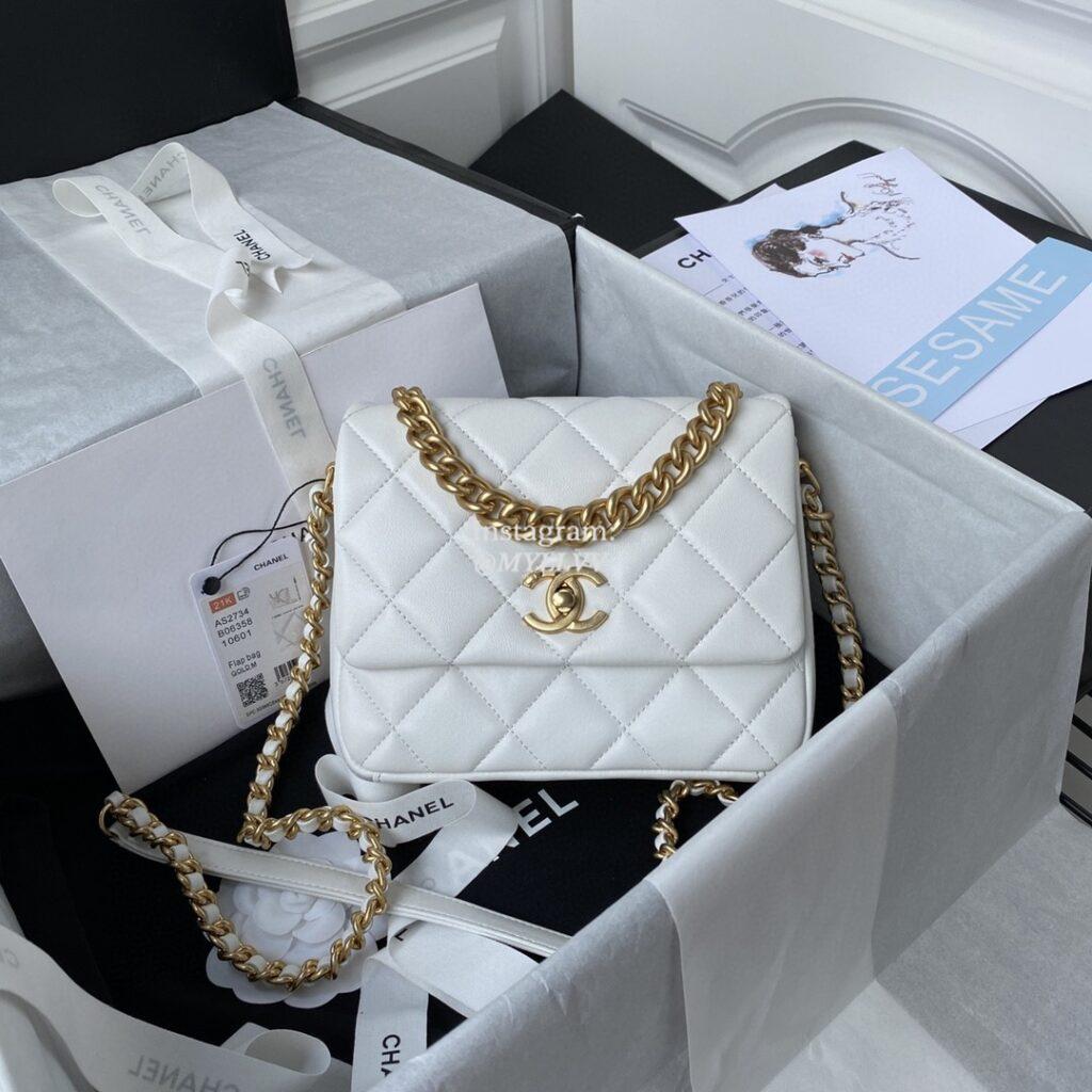 Top Quality Version:MYLLVV » Chanel Diamond Plaid Lambskin Classic Flap Bag White With Gold AS2734