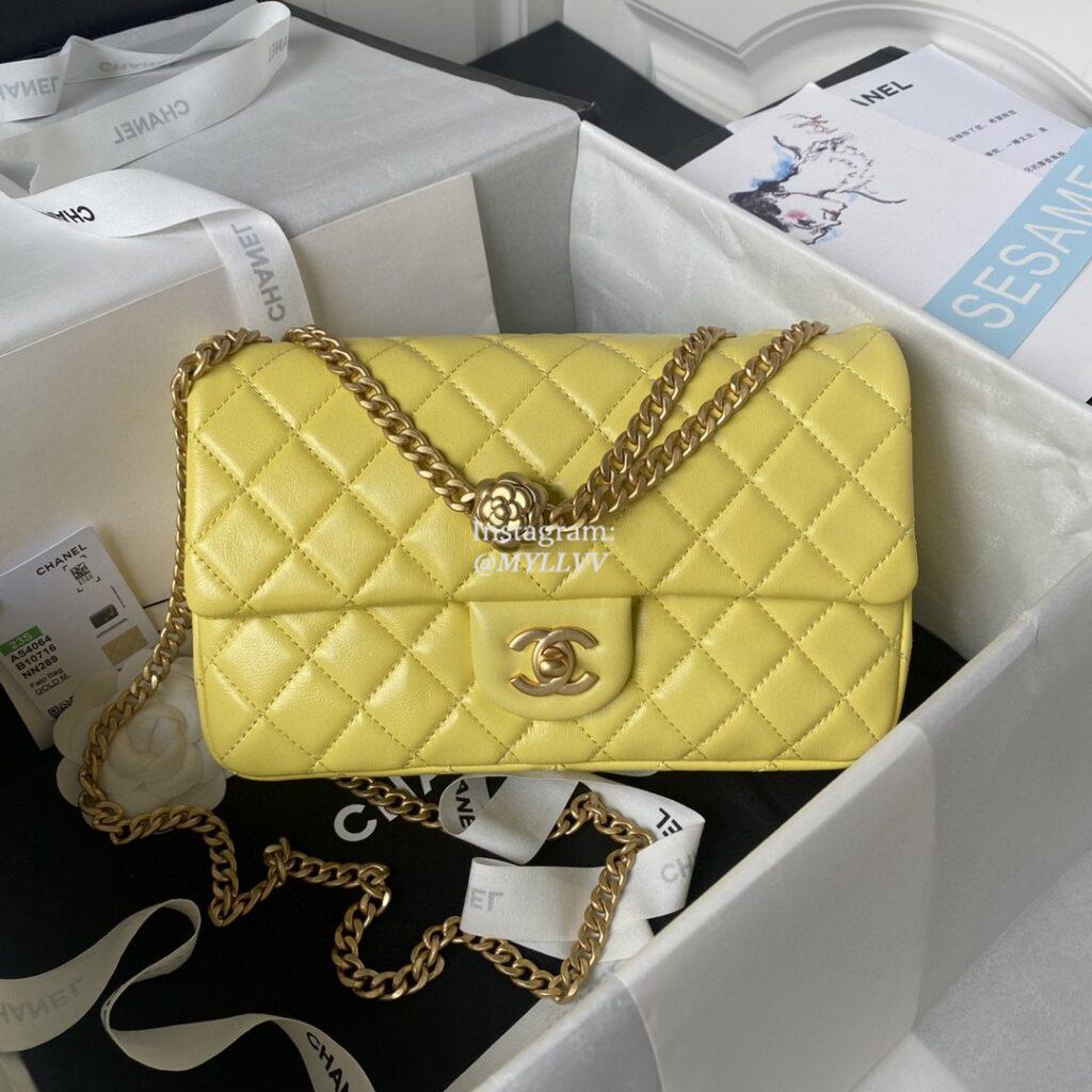 Top Quality Version:MYLLVV » Chanel Diamond Plaid Lambskin Classic Flap Bag Yellow With Gold AS4064