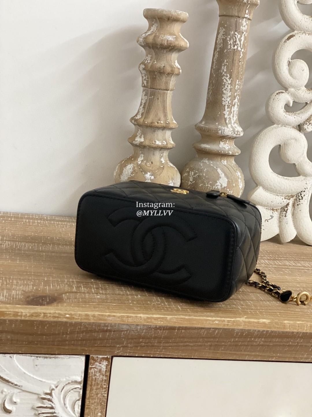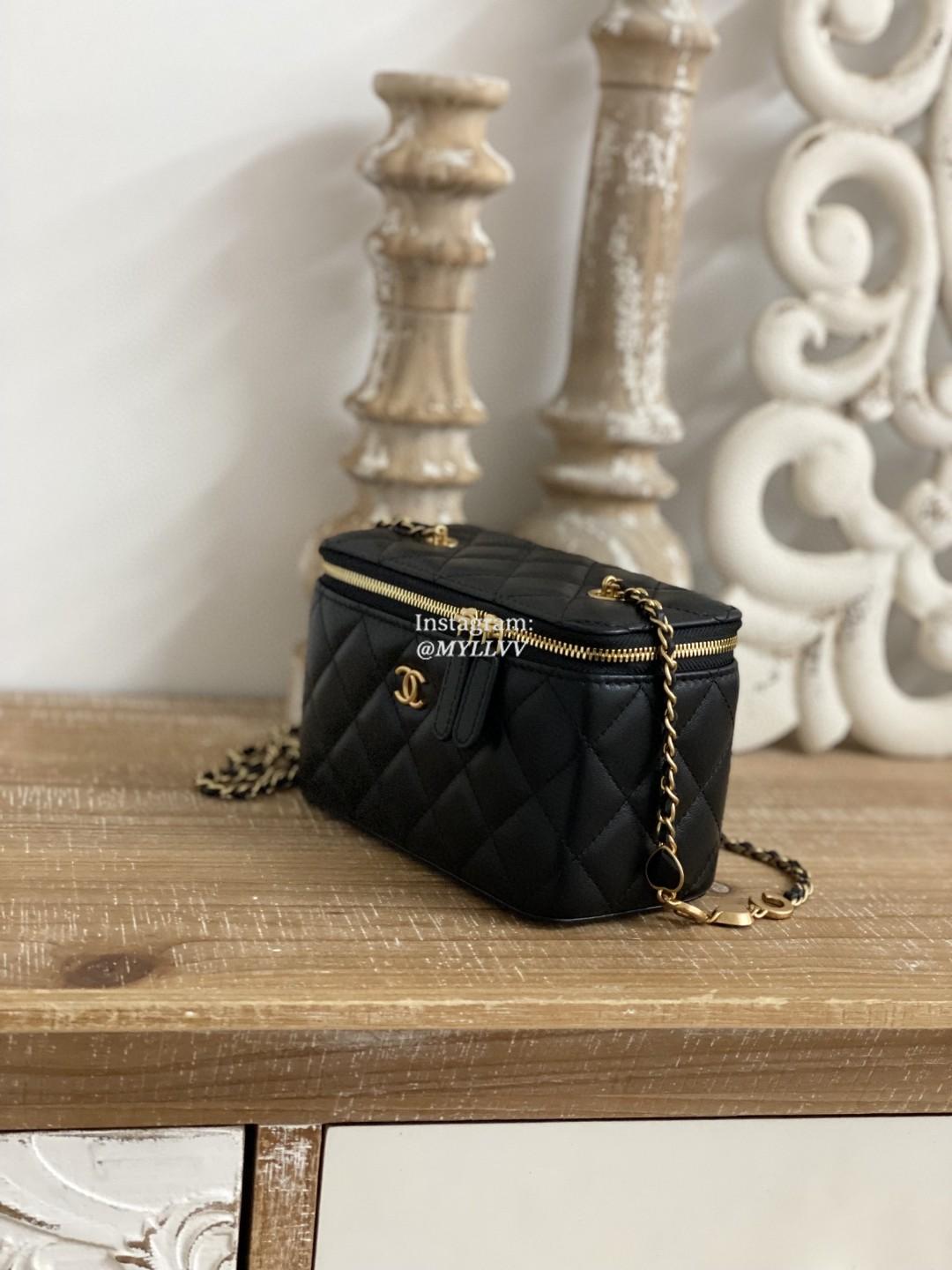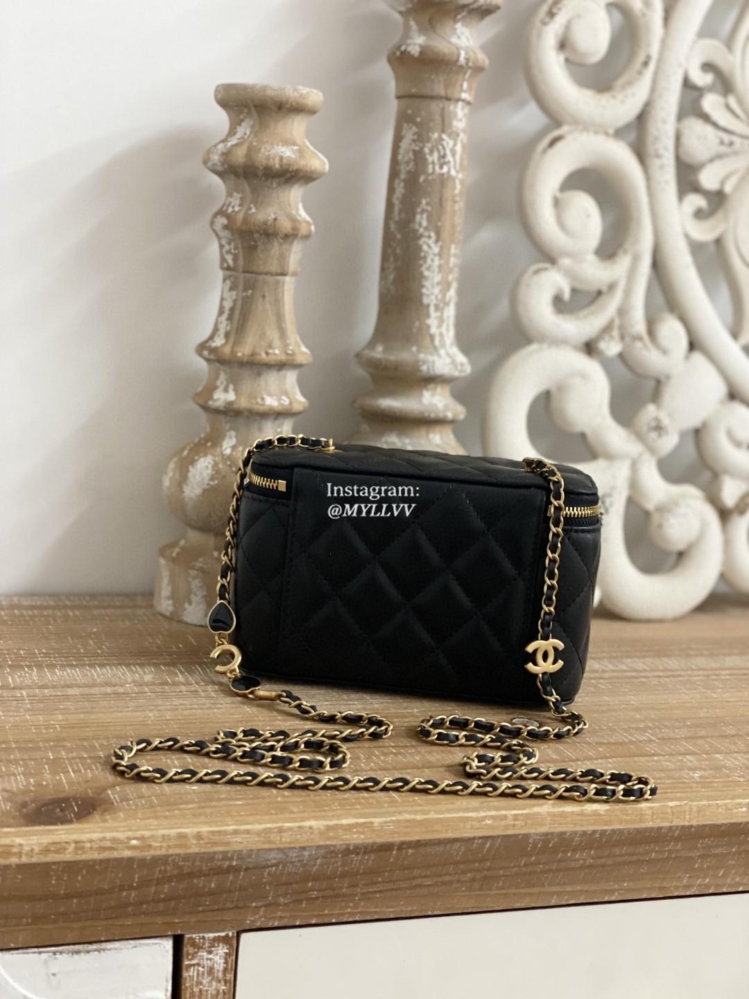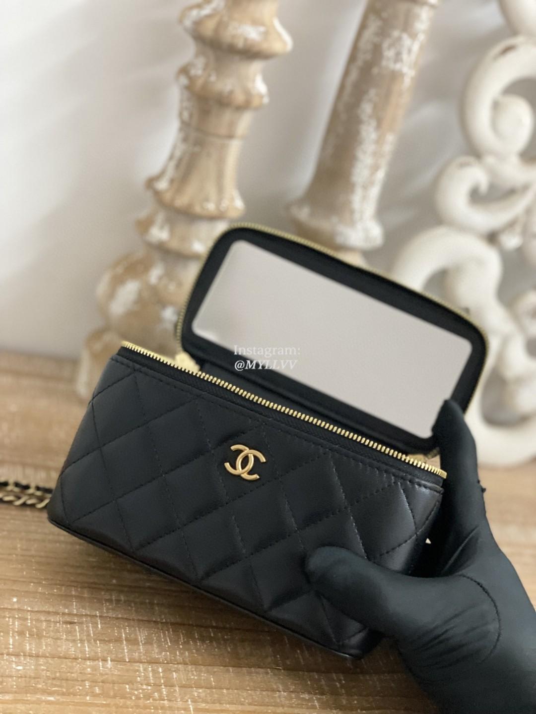 Dimension: 16.5 cm Top Quality Version:MYLLVV » Chanel Diamond Plaid Lambskin Cosmetic Bag Black With Gold 81226