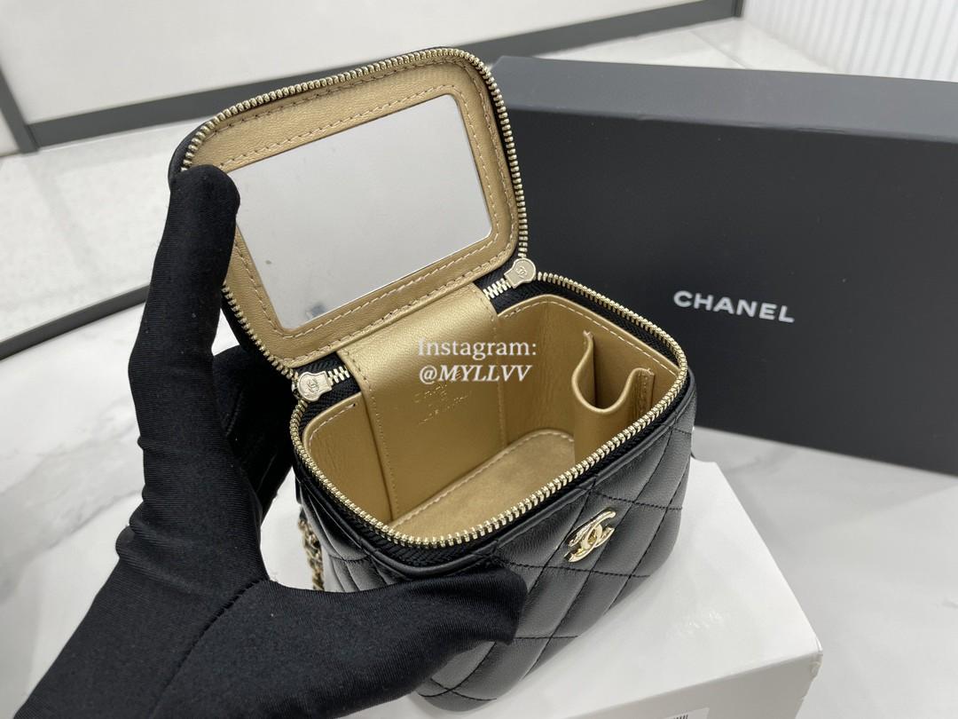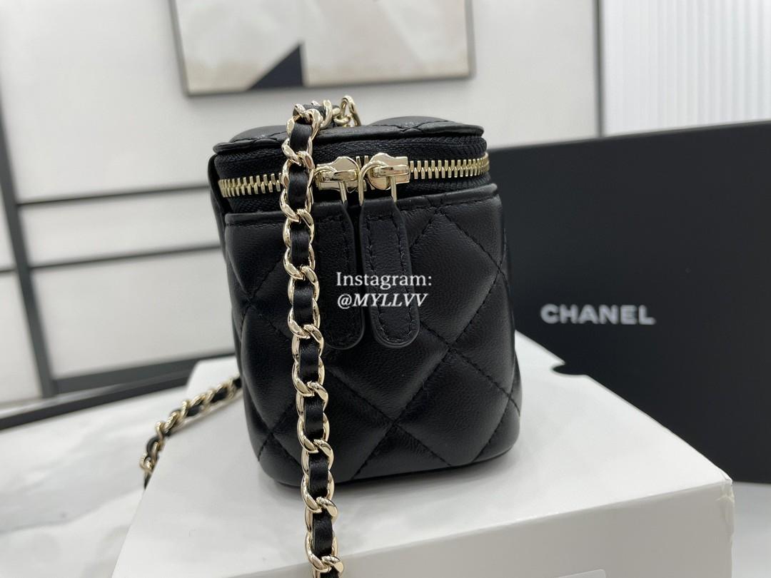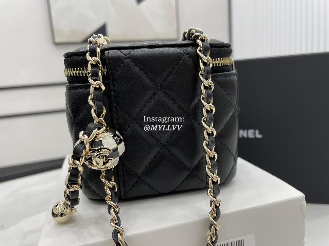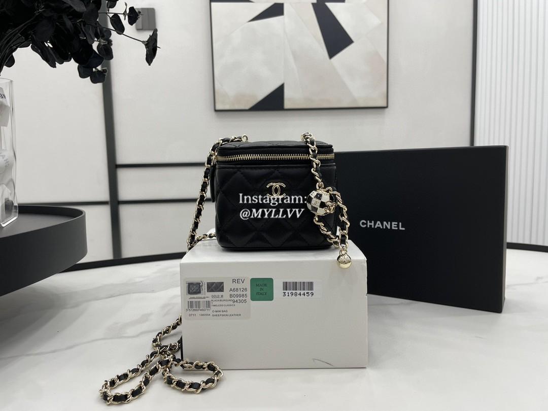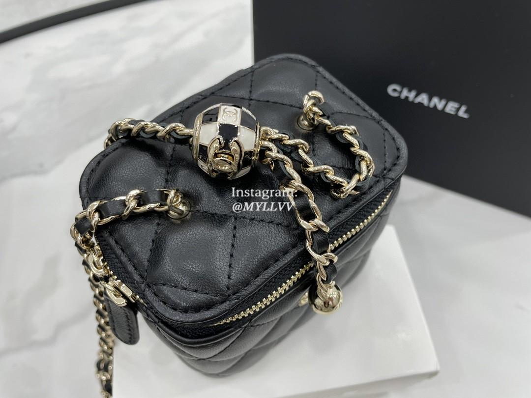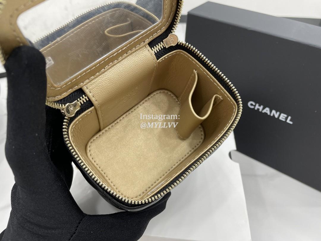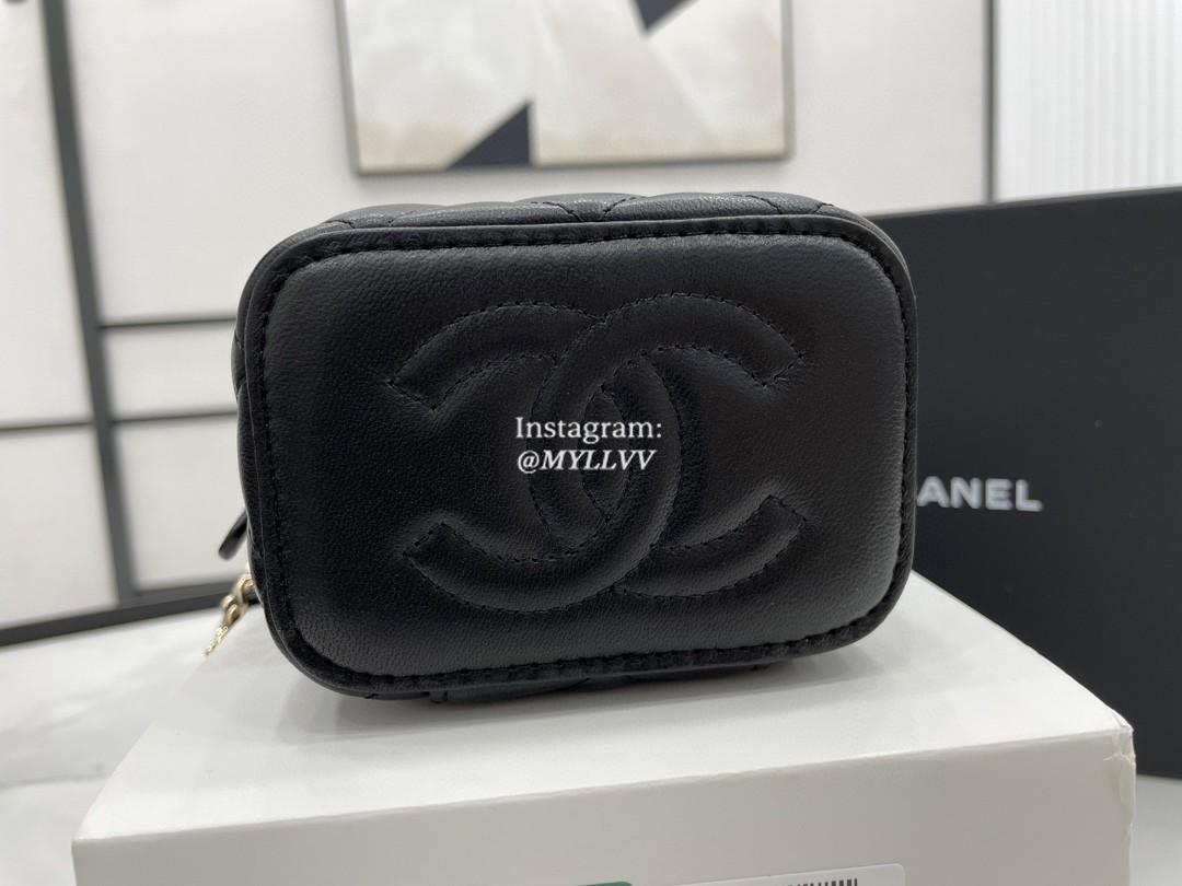 Top Quality Version:MYLLVV » Chanel Diamond Plaid Lambskin Cosmetic Bag Black With Gold A68126
