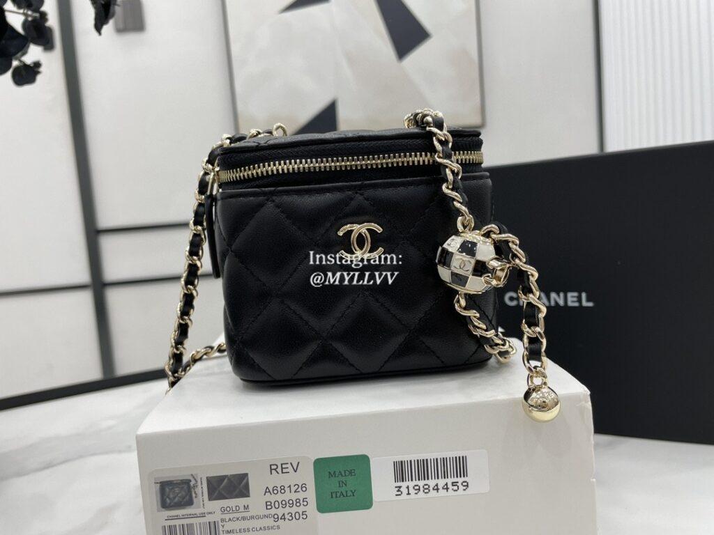 Top Quality Version:MYLLVV » Chanel Diamond Plaid Lambskin Cosmetic Bag Black With Gold A68126