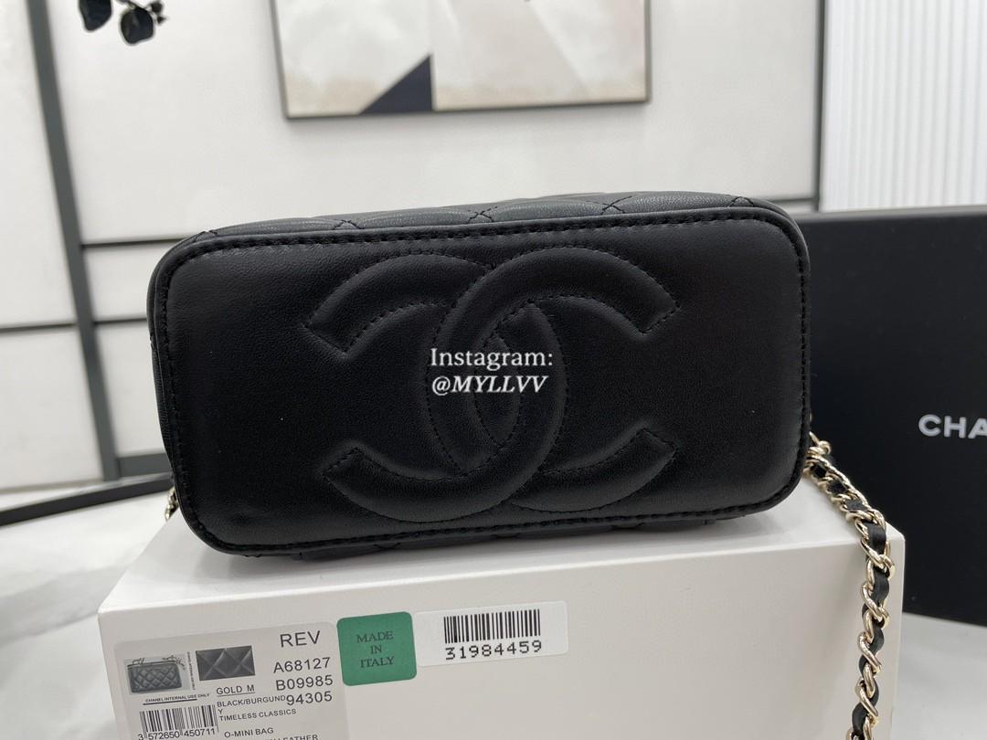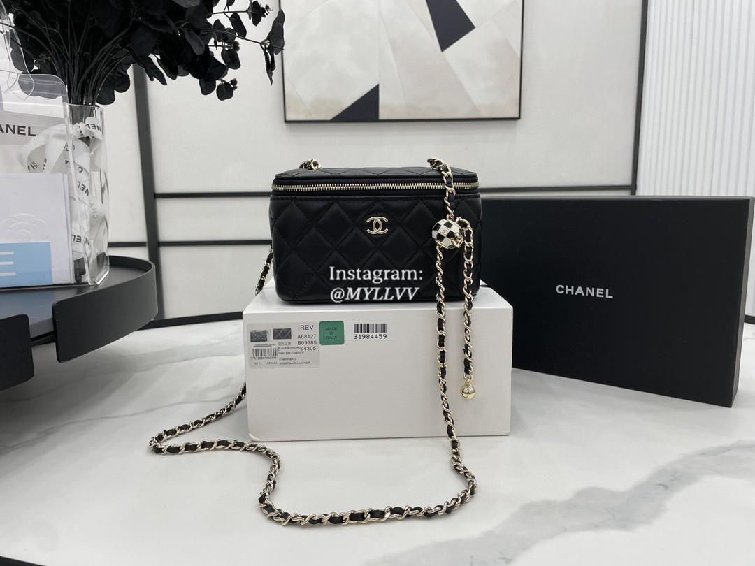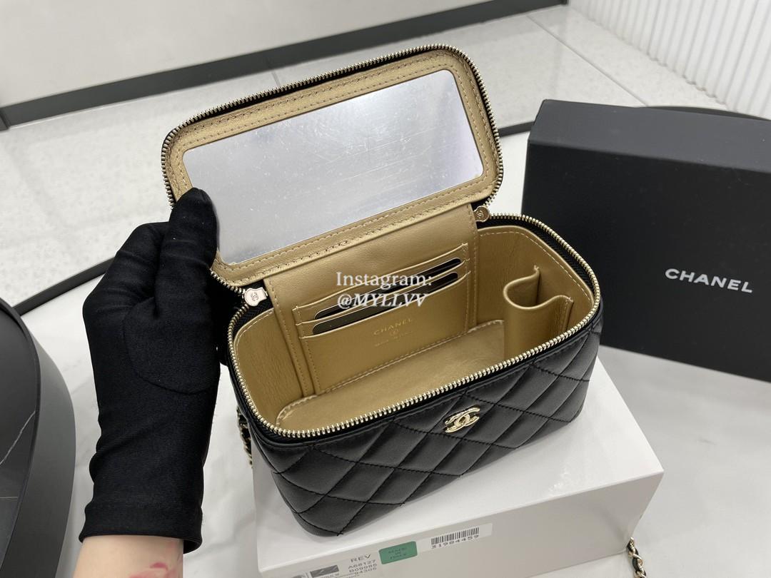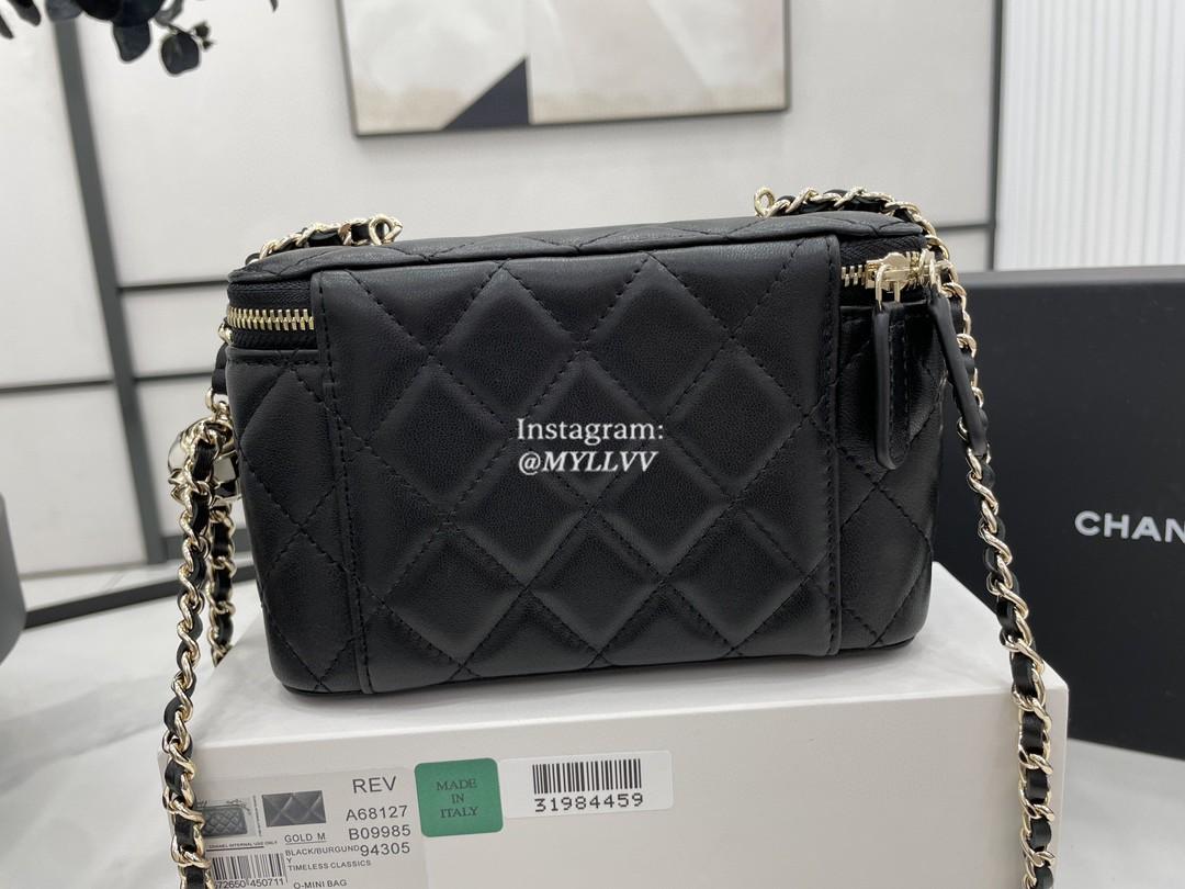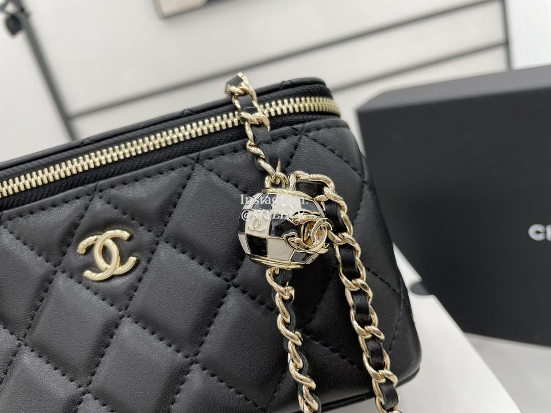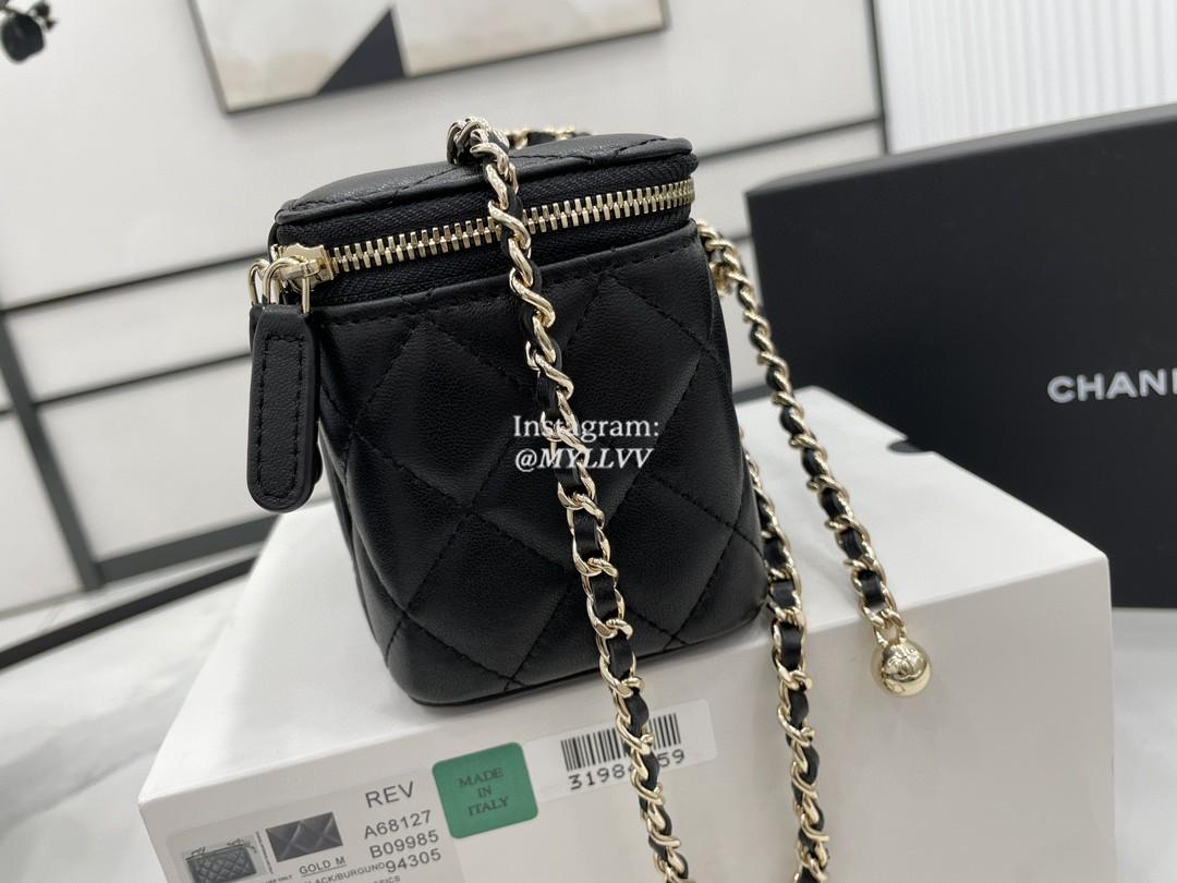 Top Quality Version:MYLLVV » Chanel Diamond Plaid Lambskin Cosmetic Bag Black With Gold A68127