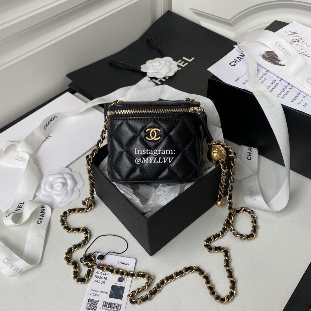 Top Quality Version:MYLLVV » Chanel Diamond Plaid Lambskin Cosmetic Bag Black With Gold AP1447