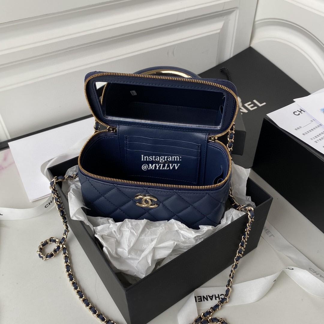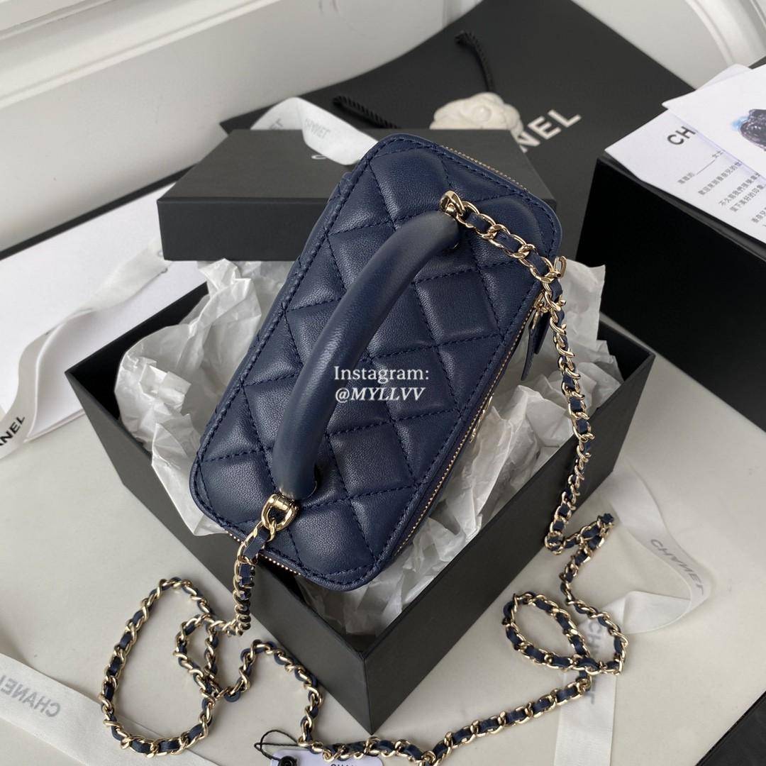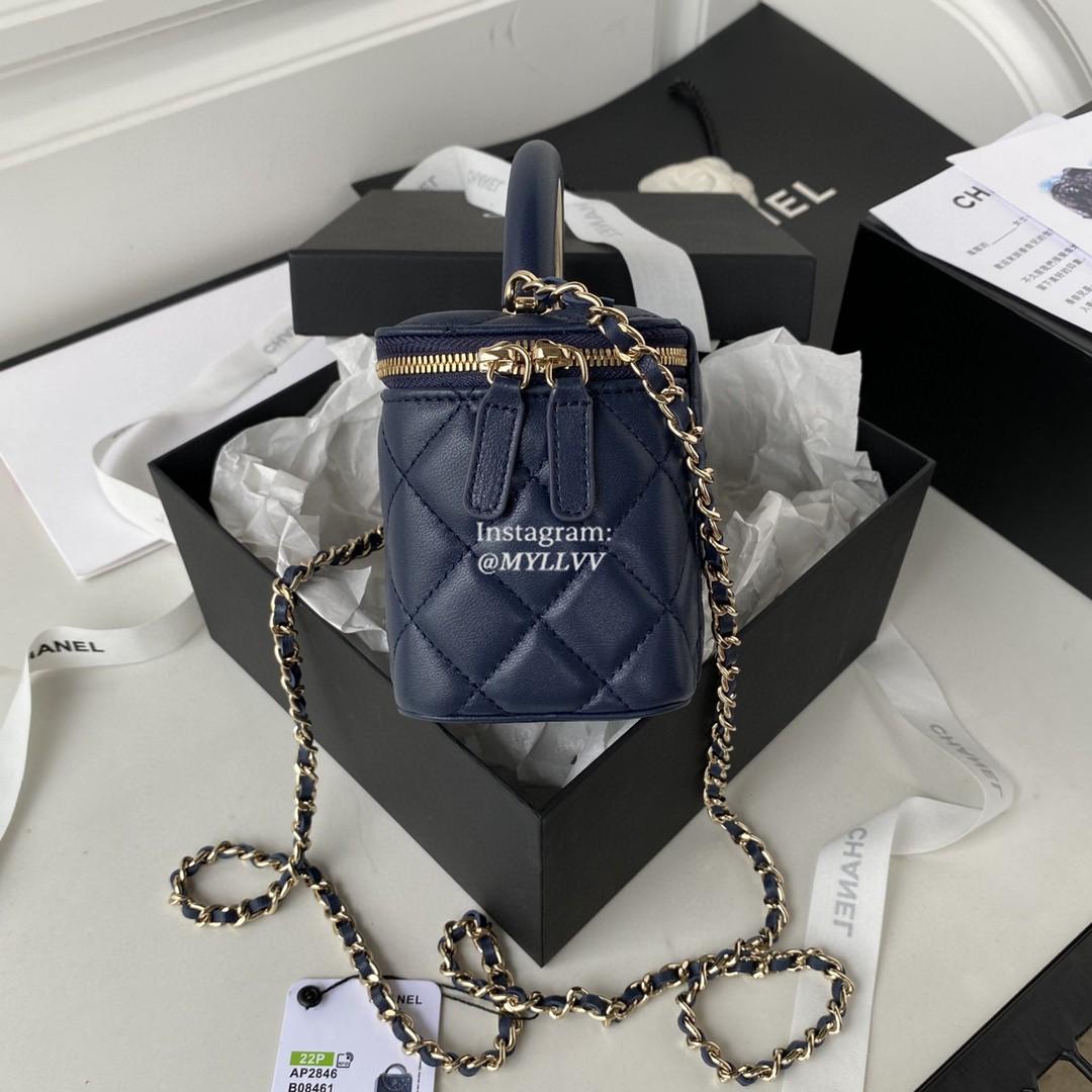 Top Quality Version:MYLLVV » Chanel Diamond Plaid Lambskin Cosmetic Bag Dark Blue With Gold AP2846