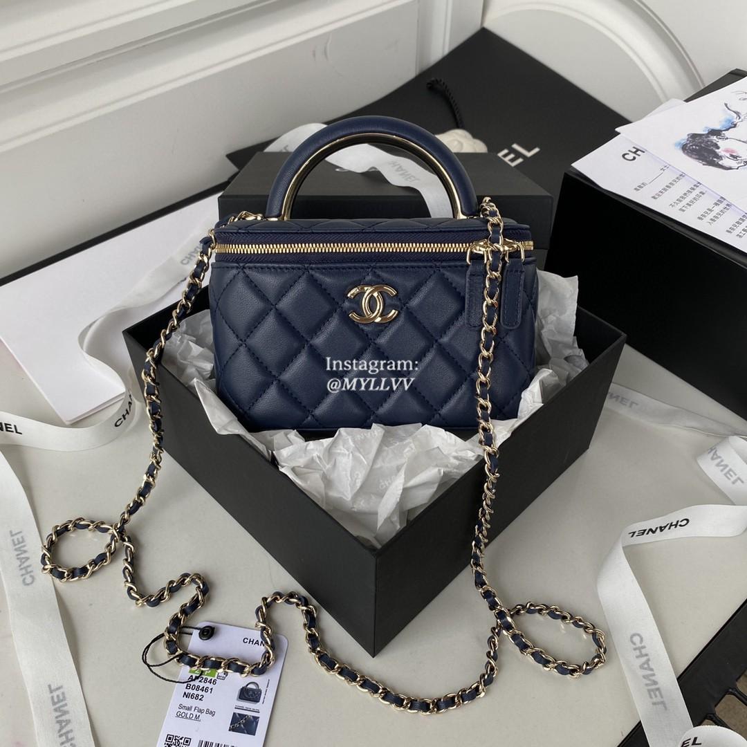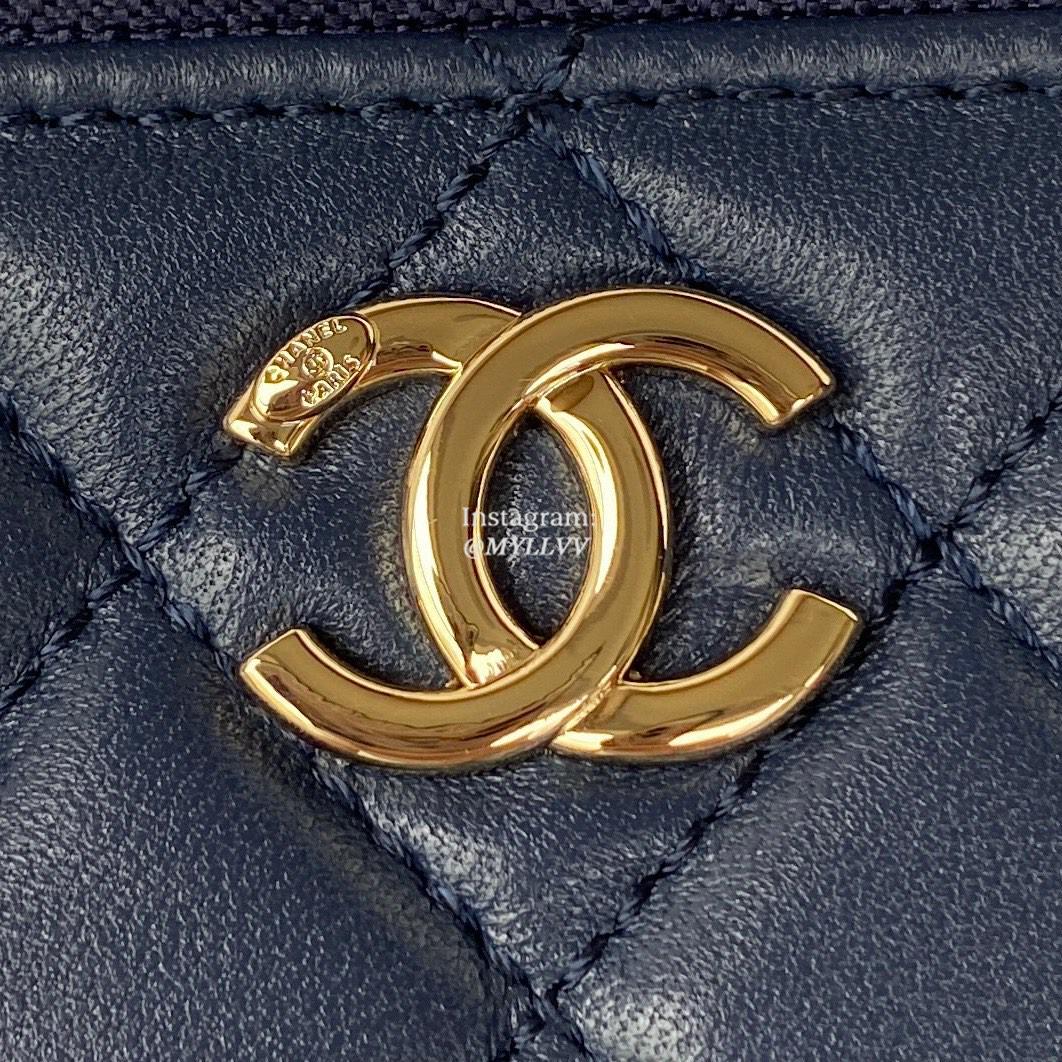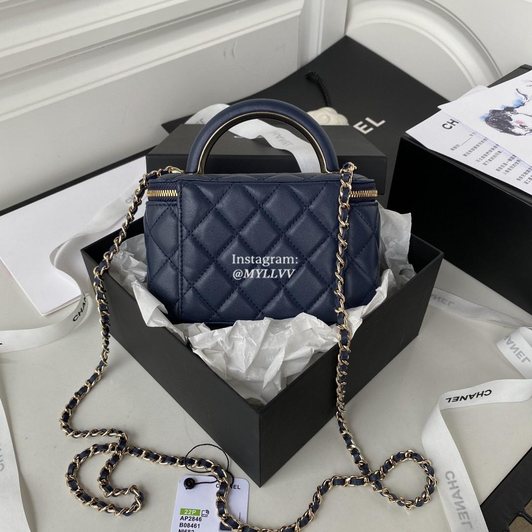 Top Quality Version:MYLLVV » Chanel Diamond Plaid Lambskin Cosmetic Bag Dark Blue With Gold AP2846