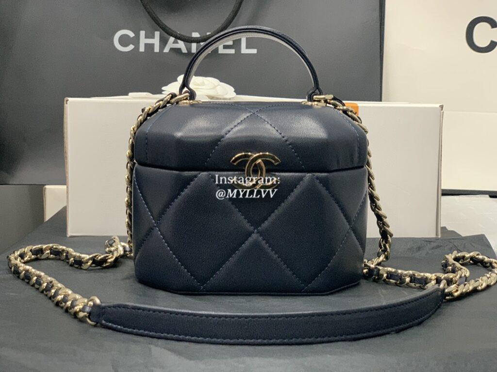 Top Quality Version:MYLLVV » Chanel Diamond Plaid Lambskin Cosmetic Bag Dark Blue With Gold AS2630