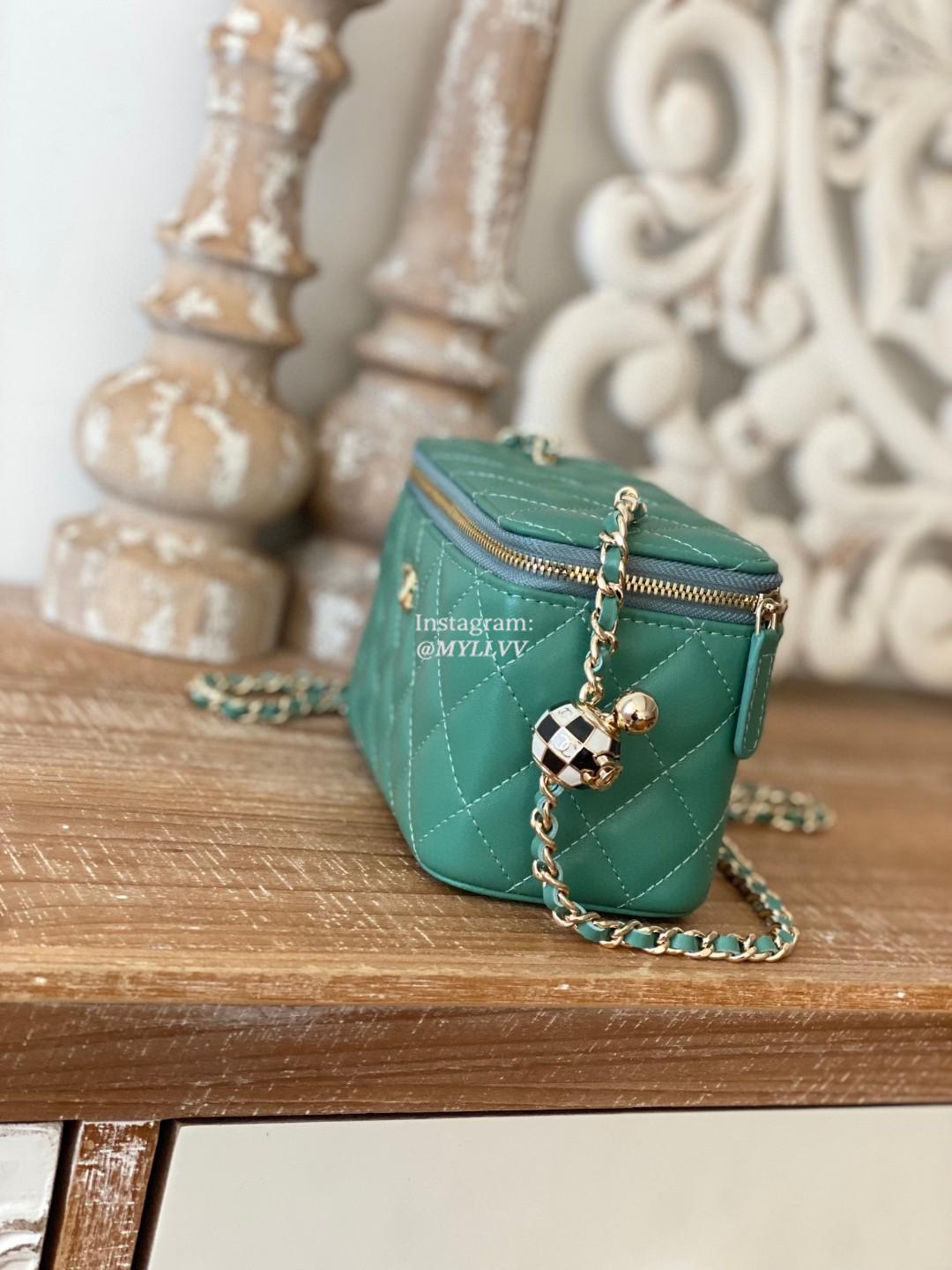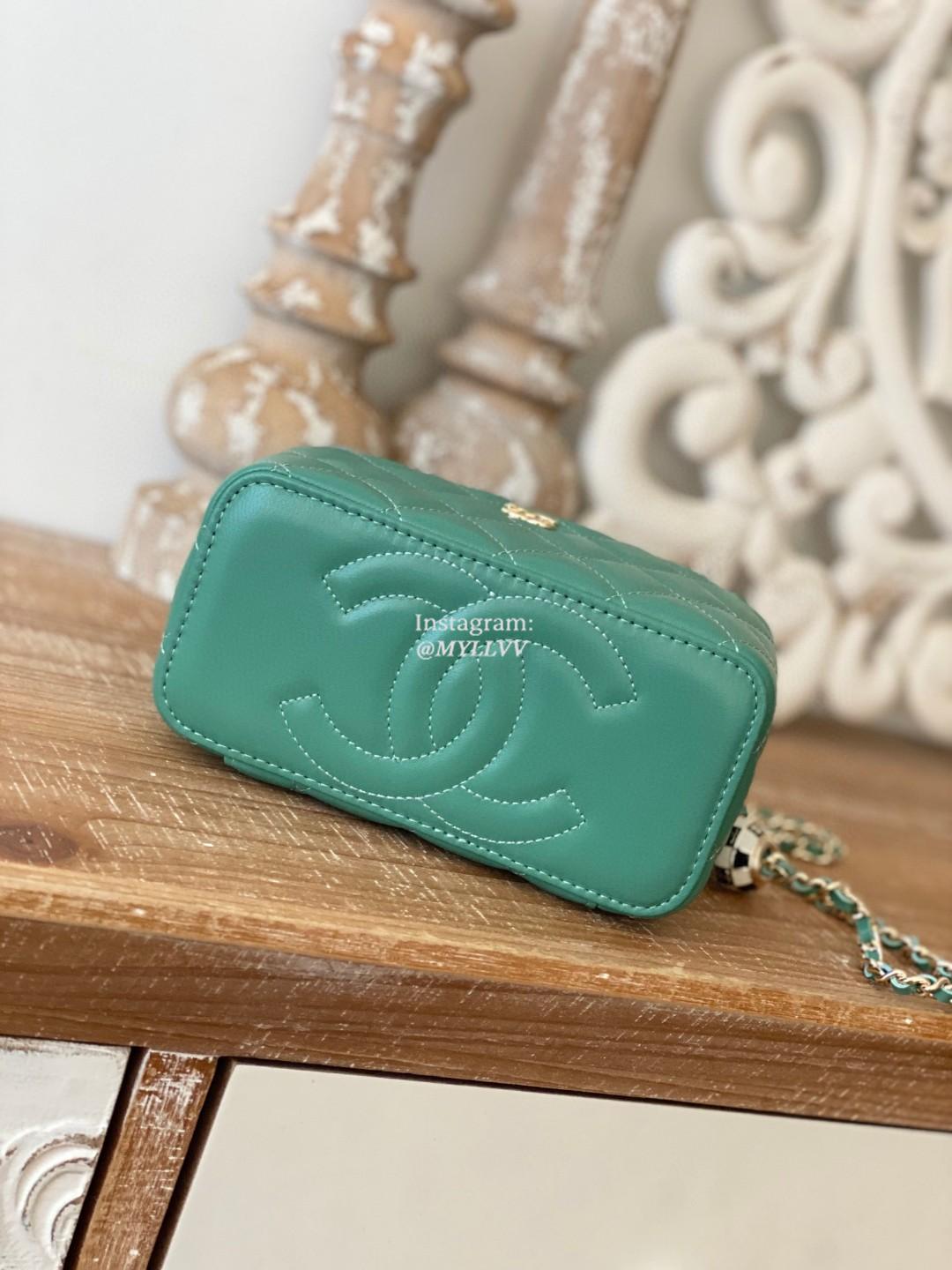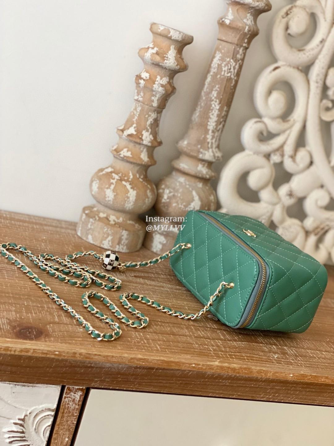 Dimension: 17.0 cm Top Quality Version:MYLLVV » Chanel Diamond Plaid Lambskin Cosmetic Bag Green With Gold 81242