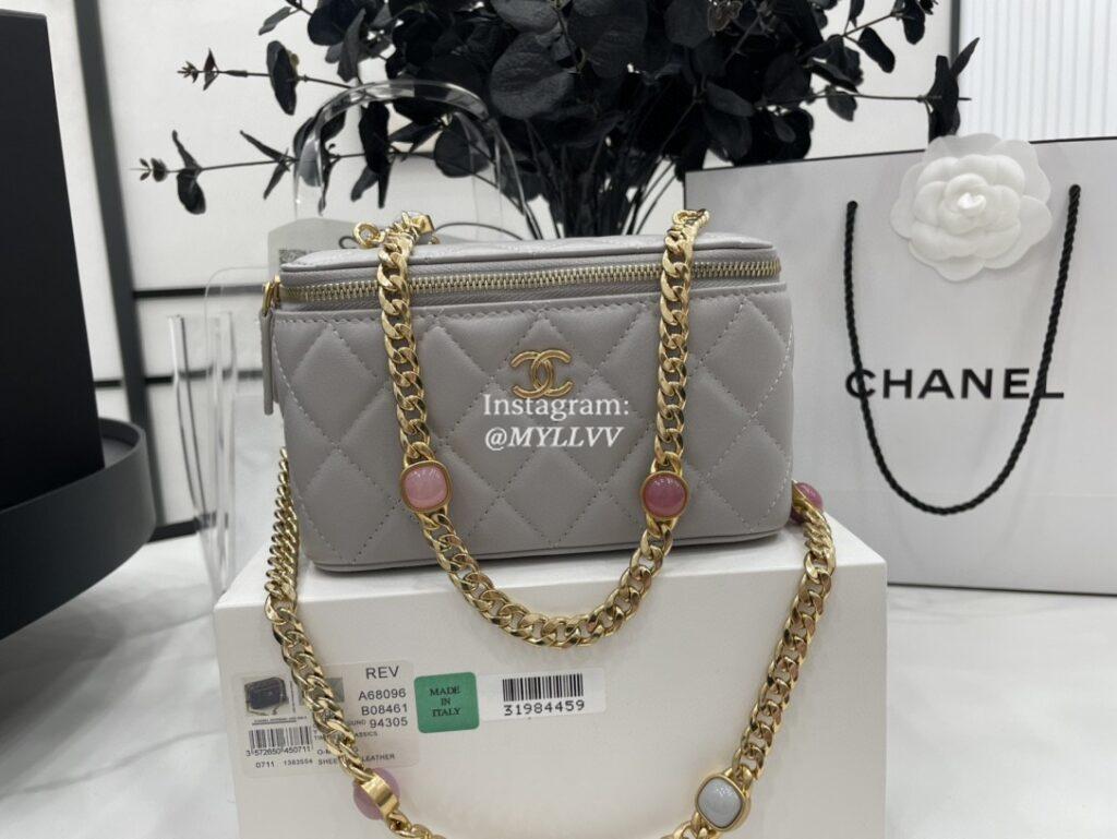 Top Quality Version:MYLLVV » Chanel Diamond Plaid Lambskin Cosmetic Bag Grey With Gold A68096