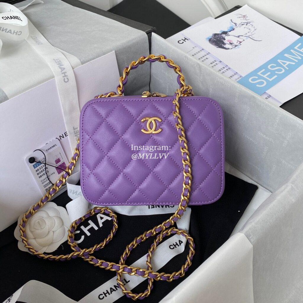 Top Quality Version:MYLLVV » Chanel Diamond Plaid Lambskin Cosmetic Bag Purple With Gold AS3318