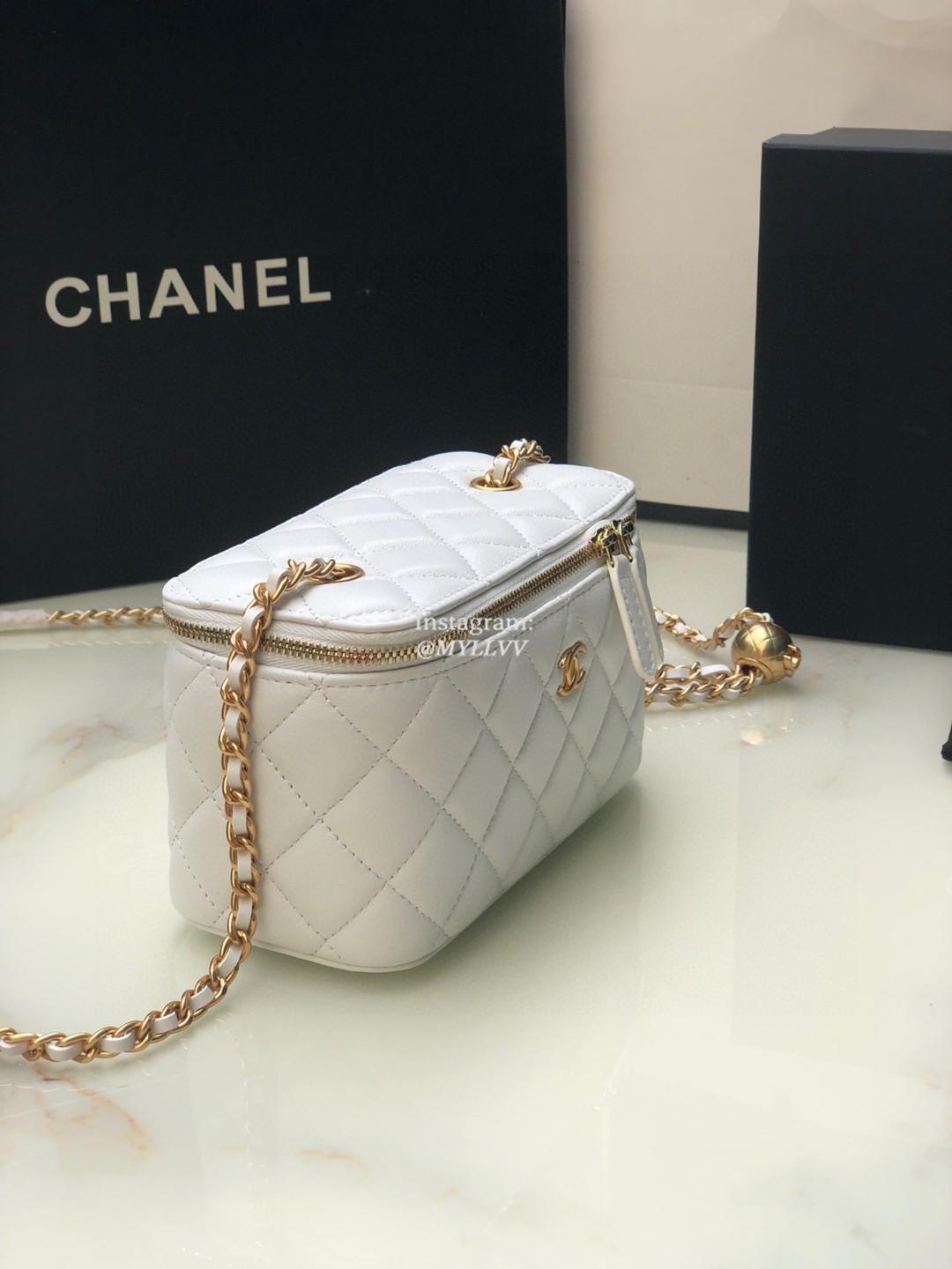 Top Quality Version:MYLLVV » Chanel Diamond Plaid Lambskin Cosmetic Bag White With Gold AP2303