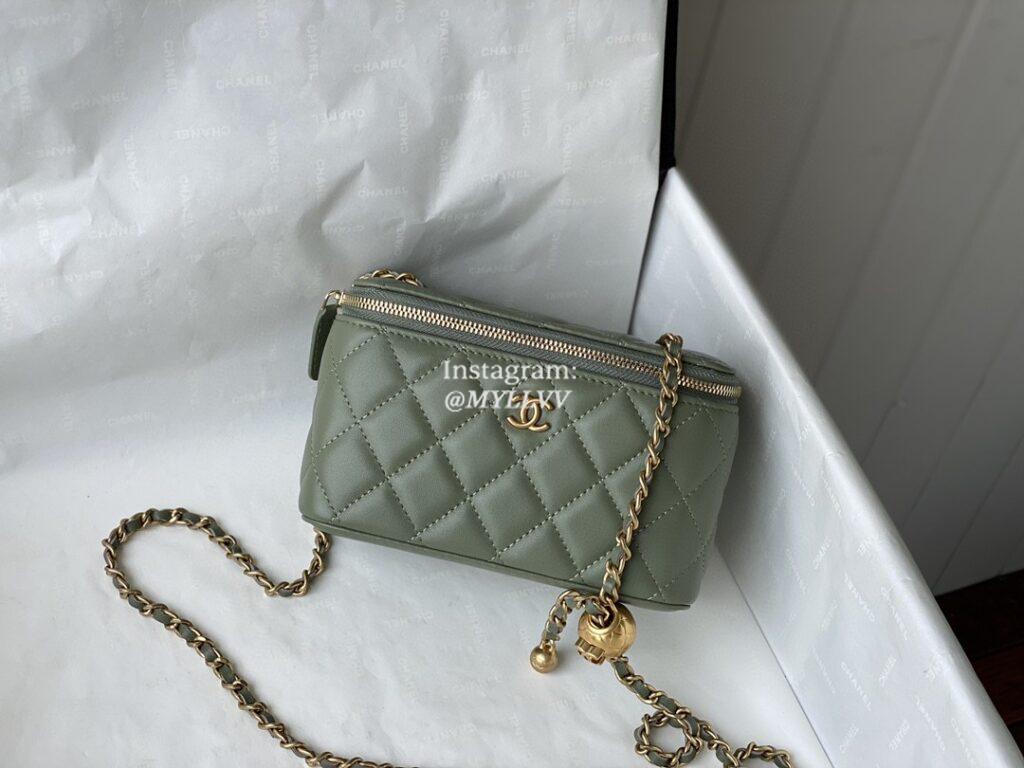 Top Quality Version:MYLLVV » Chanel Diamond Plaid Lambskin Cosmetic Case Green With Gold A81138