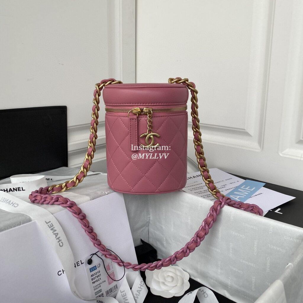 Top Quality Version:MYLLVV » Chanel Diamond Plaid Lambskin Cylinder Bag Rose Red With Gold AS3210