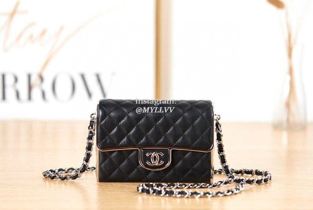 Top Quality Version:MYLLVV » Chanel Diamond Plaid Lambskin Dinner Bag Black With Silver AS3308
