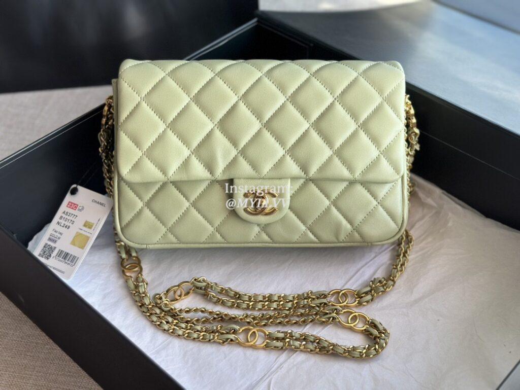 Top Quality Version:MYLLVV » Chanel Diamond Plaid Lambskin Double Chain Classic Flap Bag Mint Green With Gold AS3777