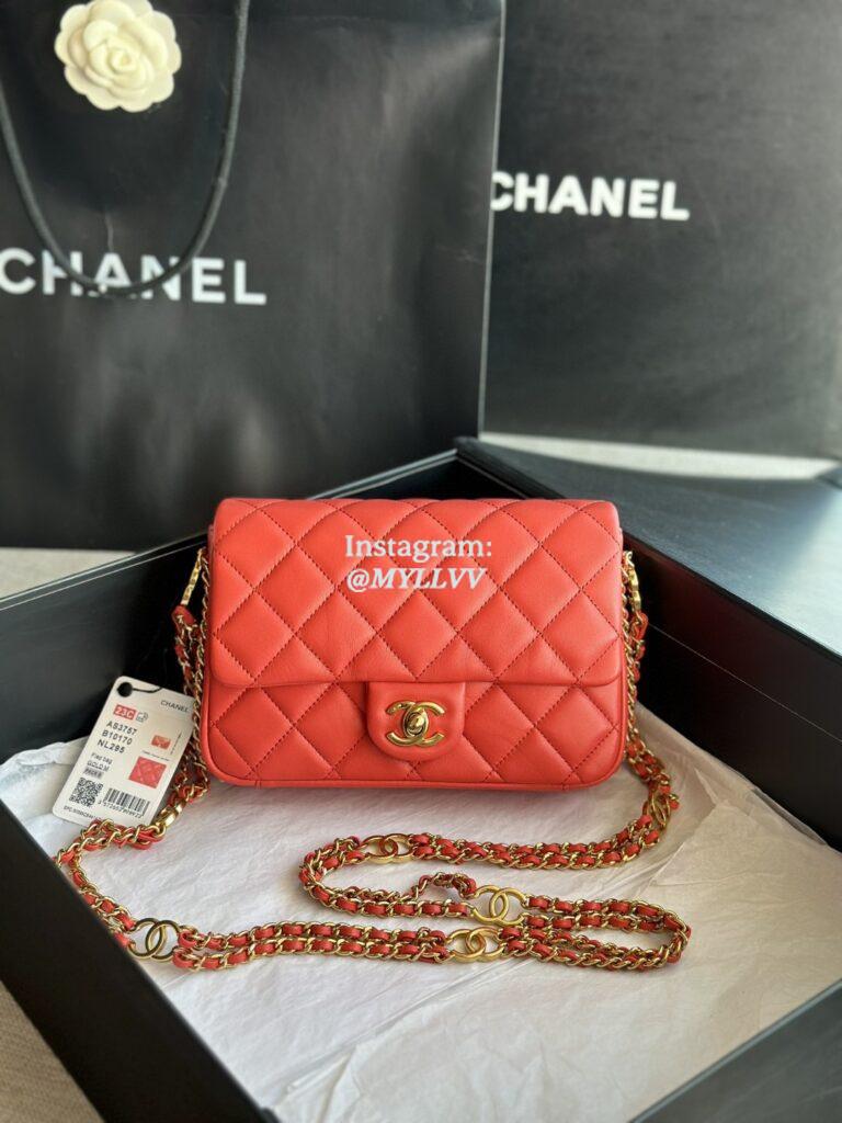 Top Quality Version:MYLLVV » Chanel Diamond Plaid Lambskin Double Chain Classic Flap Bag Red With Gold AS3757