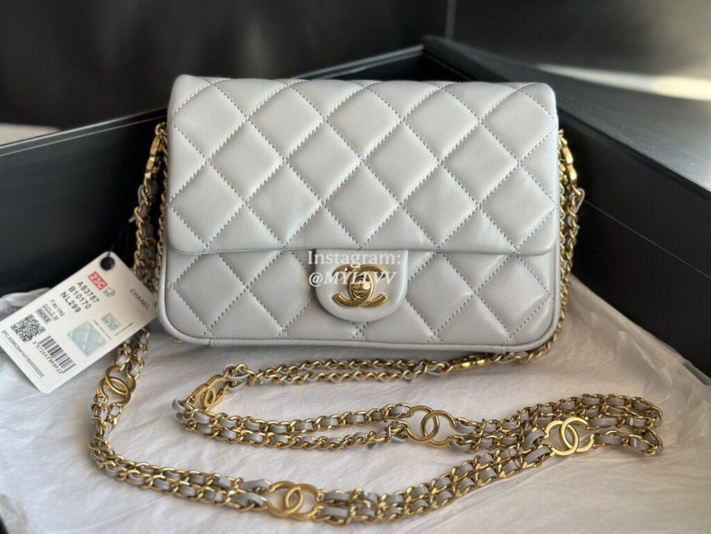 Top Quality Version:MYLLVV » Chanel Diamond Plaid Lambskin Double Chain Classic Flap Bag White With Gold AS3757