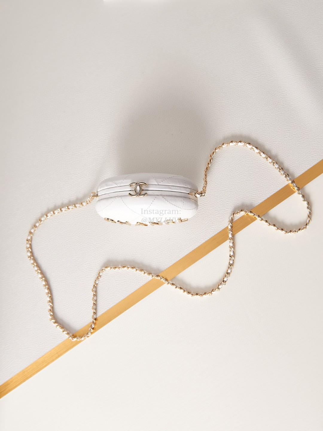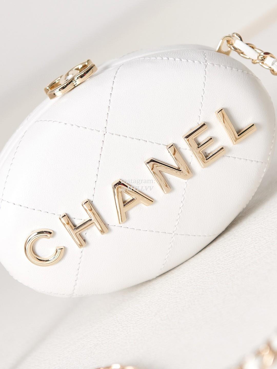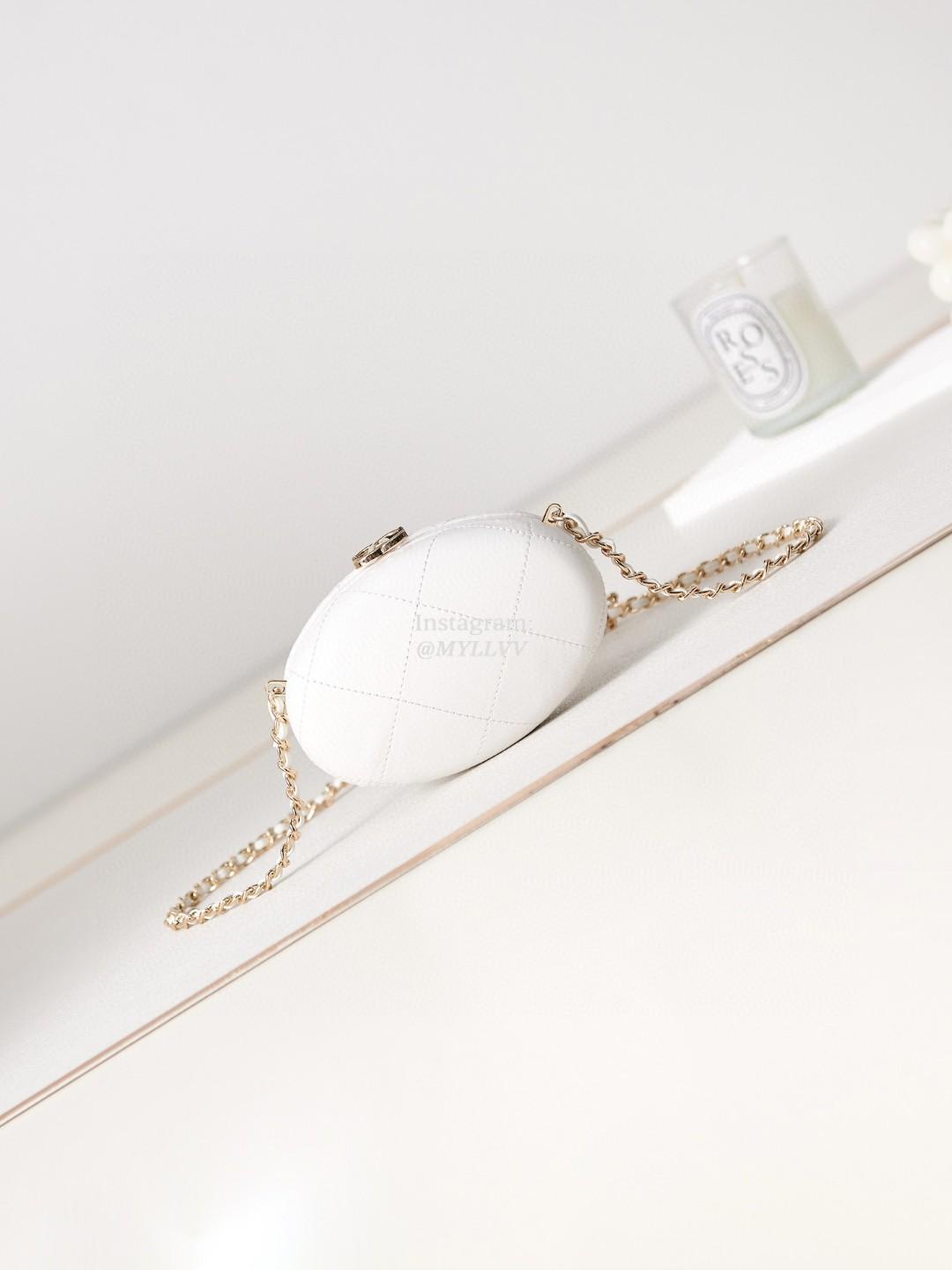 Dimension: 8.5 × 12.0 × 6.0 cm Top Quality Version:MYLLVV » Chanel Diamond Plaid Lambskin Egg Bag White With Gold AS3252