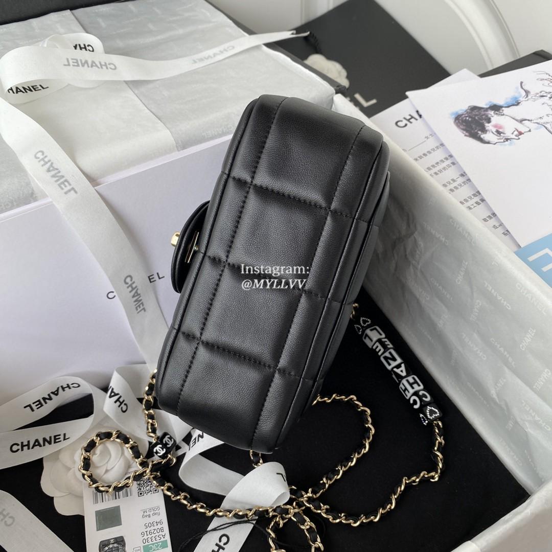Dimension: 17.0 × 14.0 × 7.0 cm Top Quality Version:MYLLVV » Chanel Diamond Plaid Lambskin Flap Bag Black With Gold AS3330