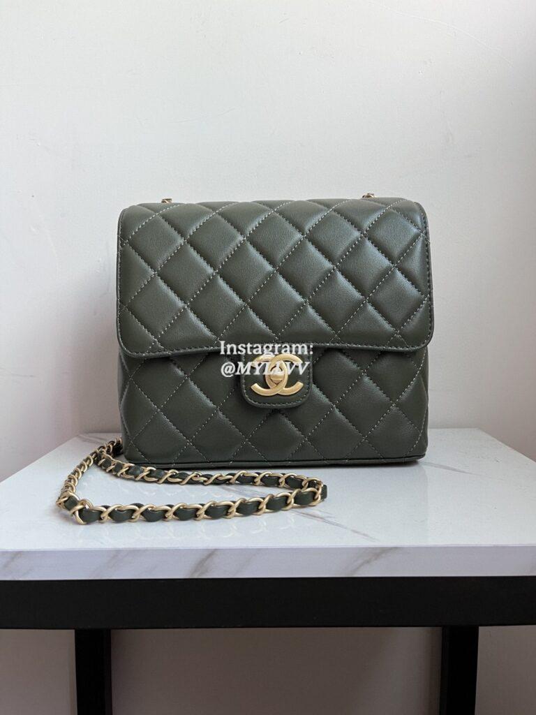 Top Quality Version:MYLLVV » Chanel Diamond Plaid Lambskin Flap Bag Dark Green With Gold AS3649
