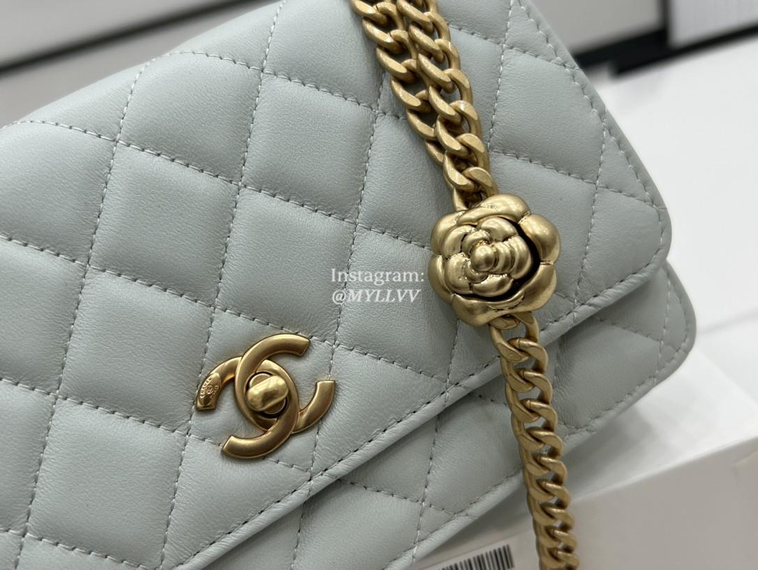 Dimension: 19.0 cm Top Quality Version:MYLLVV » Chanel Diamond Plaid Lambskin Flap Bag Light Blue With Gold A68138