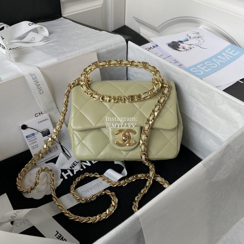 Top Quality Version:MYLLVV » Chanel Diamond Plaid Lambskin Flap Bag Light Khaki With Gold AS3748