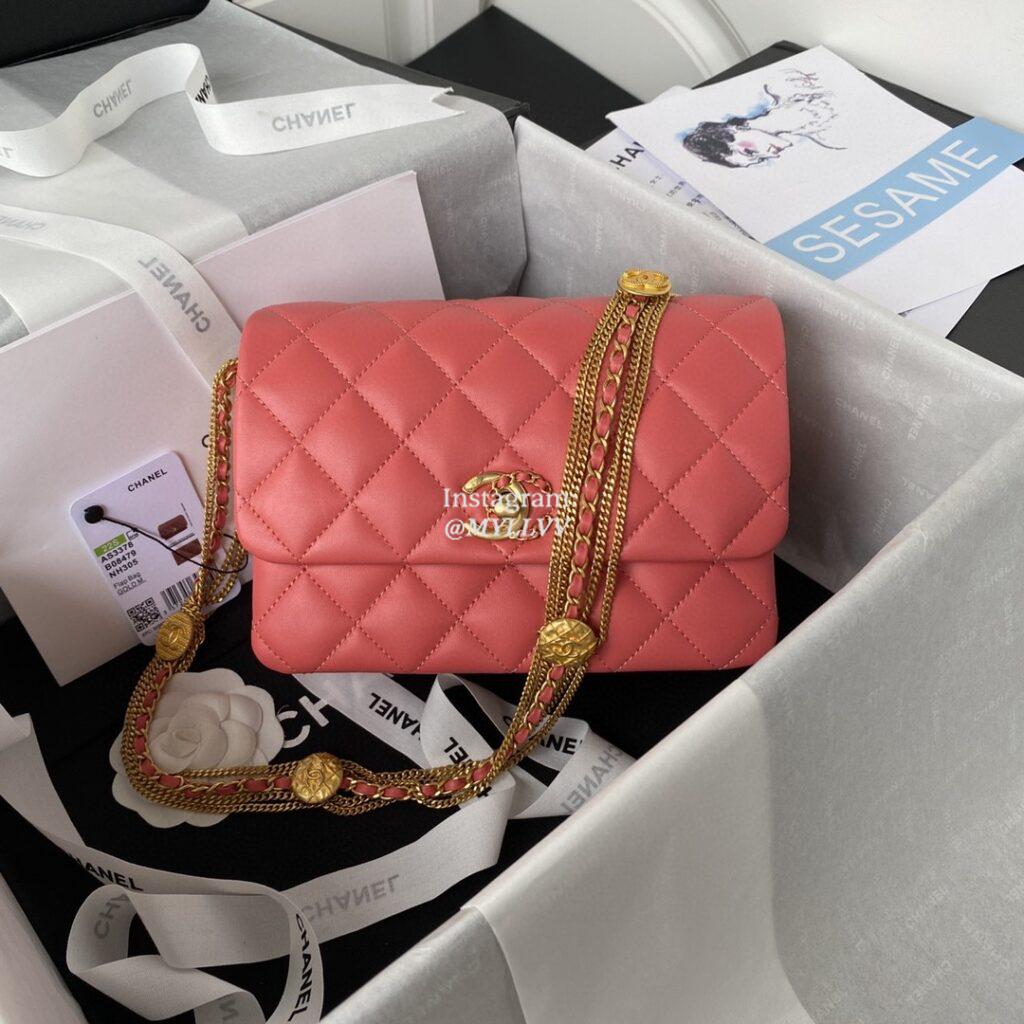 Top Quality Version:MYLLVV » Chanel Diamond Plaid Lambskin Flap Bag Peach Red With Gold AS3378