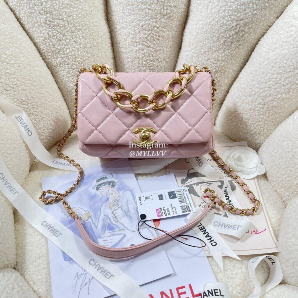 Top Quality Version:MYLLVV » Chanel Diamond Plaid Lambskin Flap Bag Pink With Gold Medium 3366