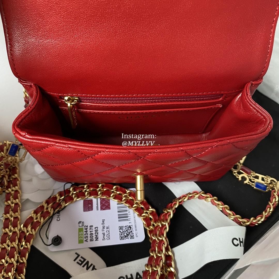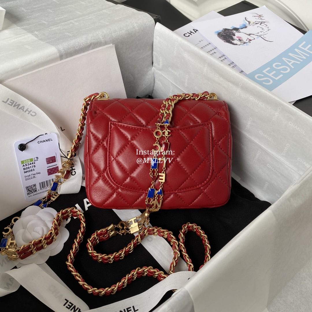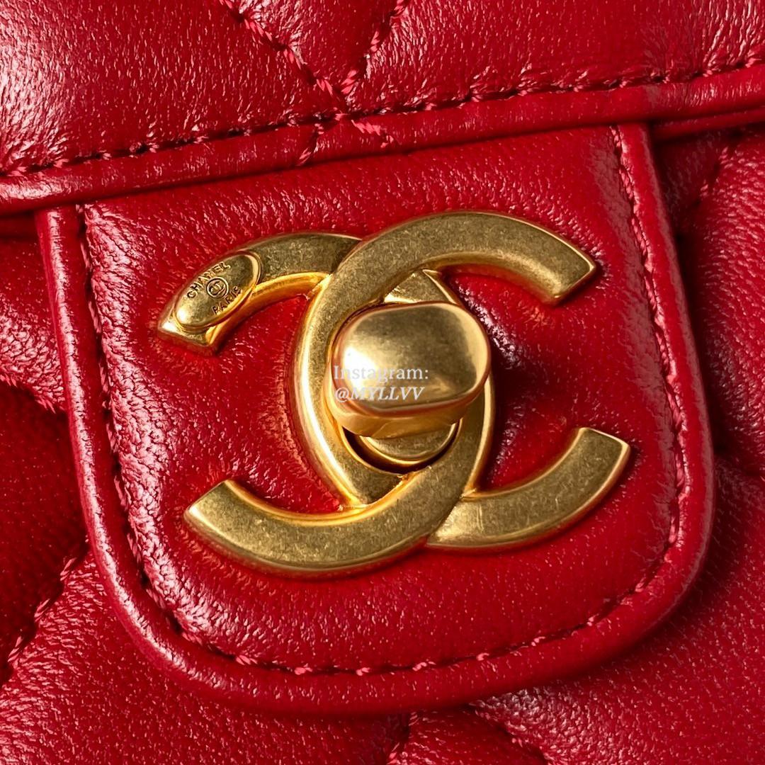 Dimension: 20.5 × 17.0 × 6.5 cm Top Quality Version:MYLLVV » Chanel Diamond Plaid Lambskin Flap Bag Red With Gold AS3442