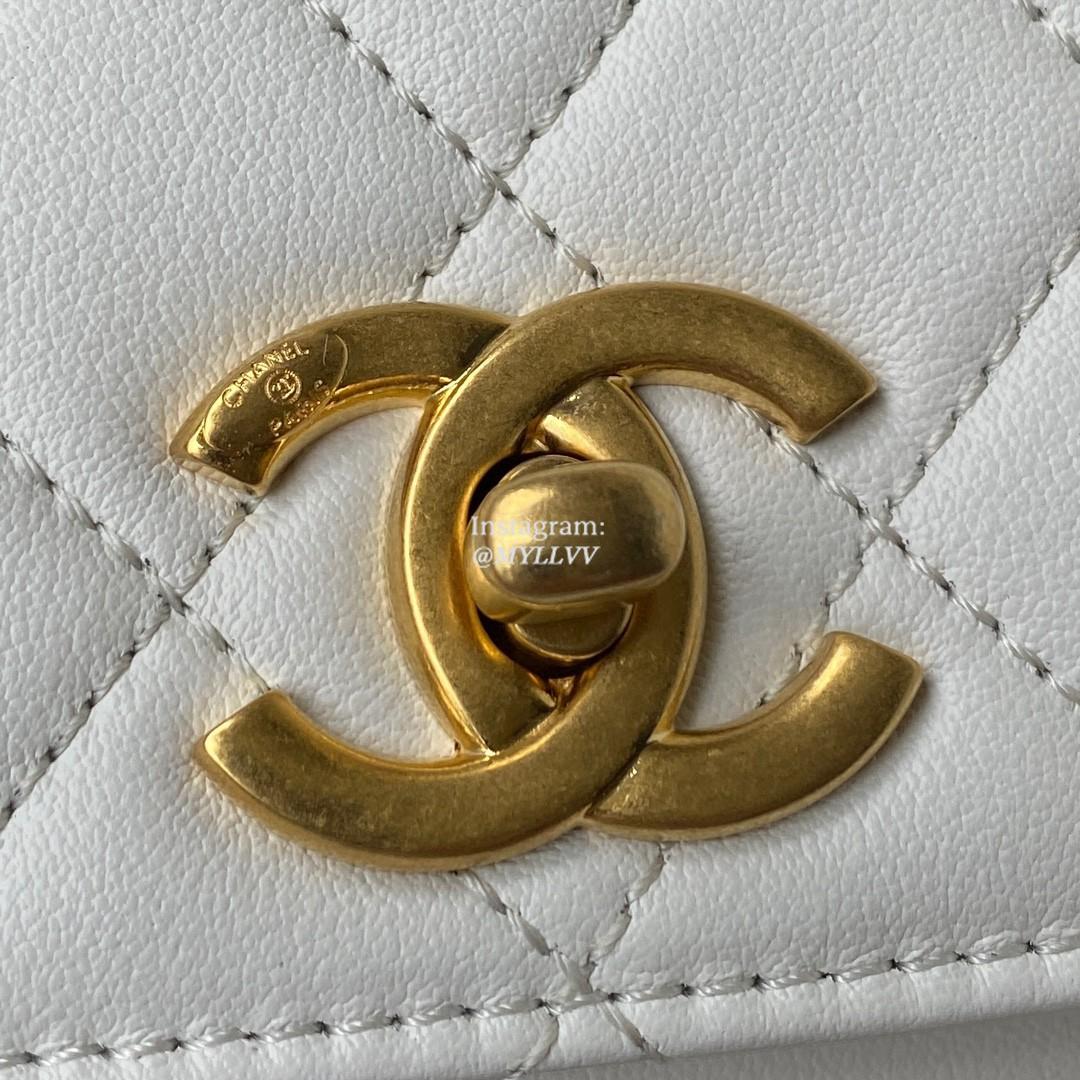 Dimension: 18.0 × 12.0 × 8.0 cm Top Quality Version:MYLLVV » Chanel Diamond Plaid Lambskin Flap Bag White With Gold AS2638