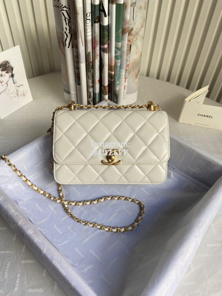 Top Quality Version:MYLLVV » Chanel Diamond Plaid Lambskin Flap Bag White With Gold Small 2615