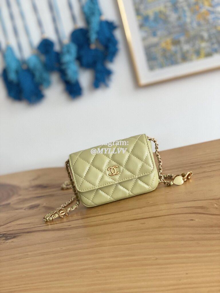 Dimension: 18.0 cm Top Quality Version:MYLLVV » Chanel Diamond Plaid Lambskin Gemstone Chain Bag Green With Gold AS2379