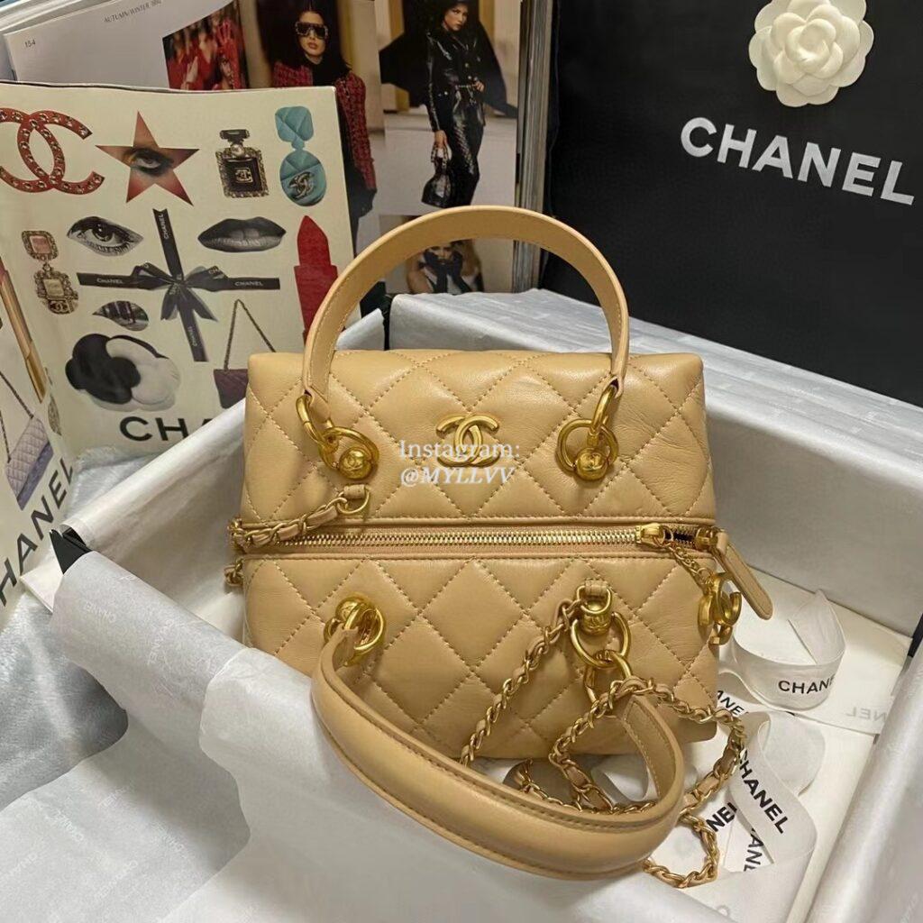 Top Quality Version:MYLLVV » Chanel Diamond Plaid Lambskin Handle Bag Apricot With Gold AS7768