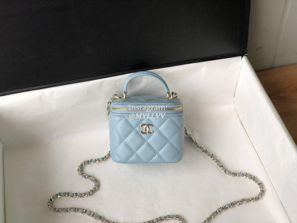 Top Quality Version:MYLLVV » Chanel Diamond Plaid Lambskin Handle Bag Sky Blue With Gold 81189