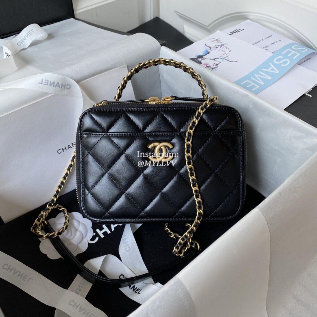 Top Quality Version:MYLLVV » Chanel Diamond Plaid Lambskin Handle Box Bag Black With Gold AS3899