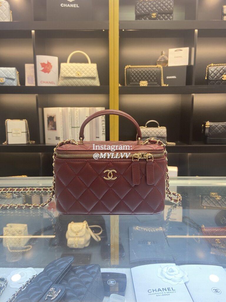 Top Quality Version:MYLLVV » Chanel Diamond Plaid Lambskin Handle Box Bag Wine Red With Gold AP2199