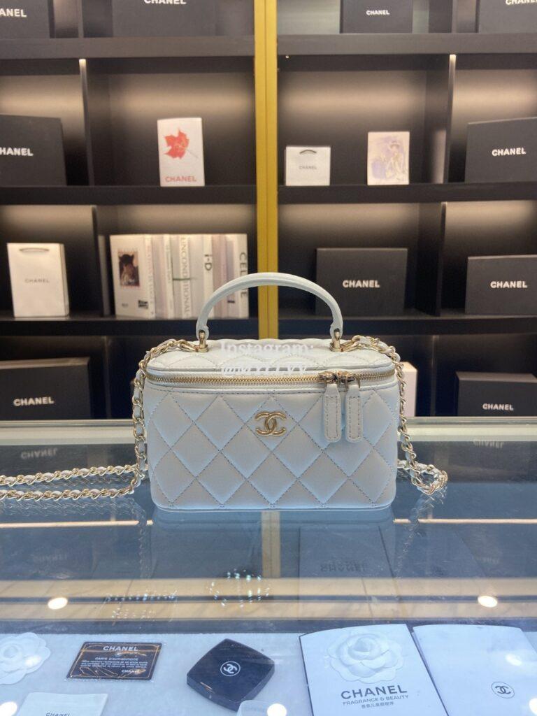 Top Quality Version:MYLLVV » Chanel Diamond Plaid Lambskin Handle Box Bag White With Gold AP2199